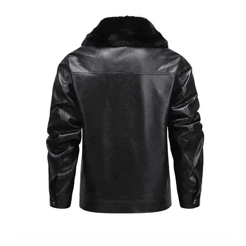 "Classic Black Leather Jacket with Faux Fur Collar | Ultimate Warmth & Timeless Style " Casual Formal