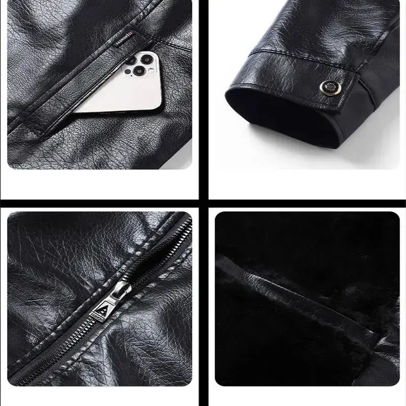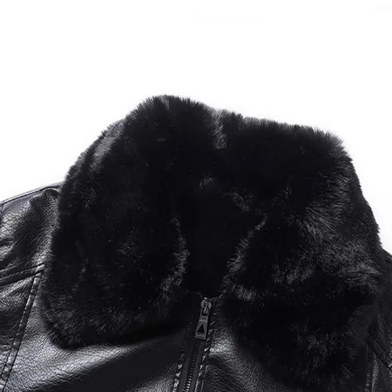 Elevate Your Style with Elegance ? Classic Black Leather Jacket with Faux Fur Collar ? This jacket redefines sophistication. It features high-quality leather and soft artificial fur, offering a premium texture. Ideal for formal and casual settings, it exudes personality. The smooth zipper operation underscores superior craftsmanship. Add this timeless piece to your wardrobe for effortless chic. Key Features ? Material: High-quality leather and soft artificial fur.? Design: Classic style with fashionable fur collar.? Versatility: Perfect for business casual and casual gatherings.? Quality Assurance: Smooth zipper operation highlights superior craftsmanship. Essential Wardrobe Addition This jacket combines warmth and style. Its design ensures you look effortlessly chic. It's your go-to for versatile looks, suitable for various occasions. Enhance your personal charm with this timeless piece.
