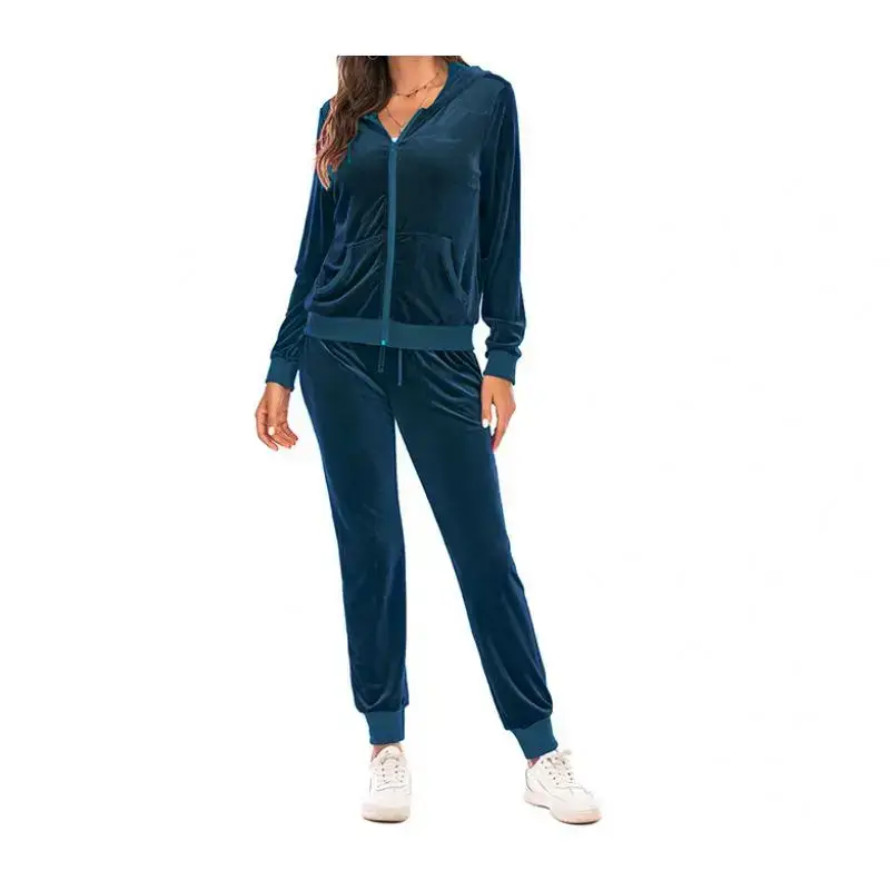 Women'S Tracksuit Set Full Zipper Hoodie Workout Pants Velvet Sweatsuit Jogging Suits Holiday Clothing