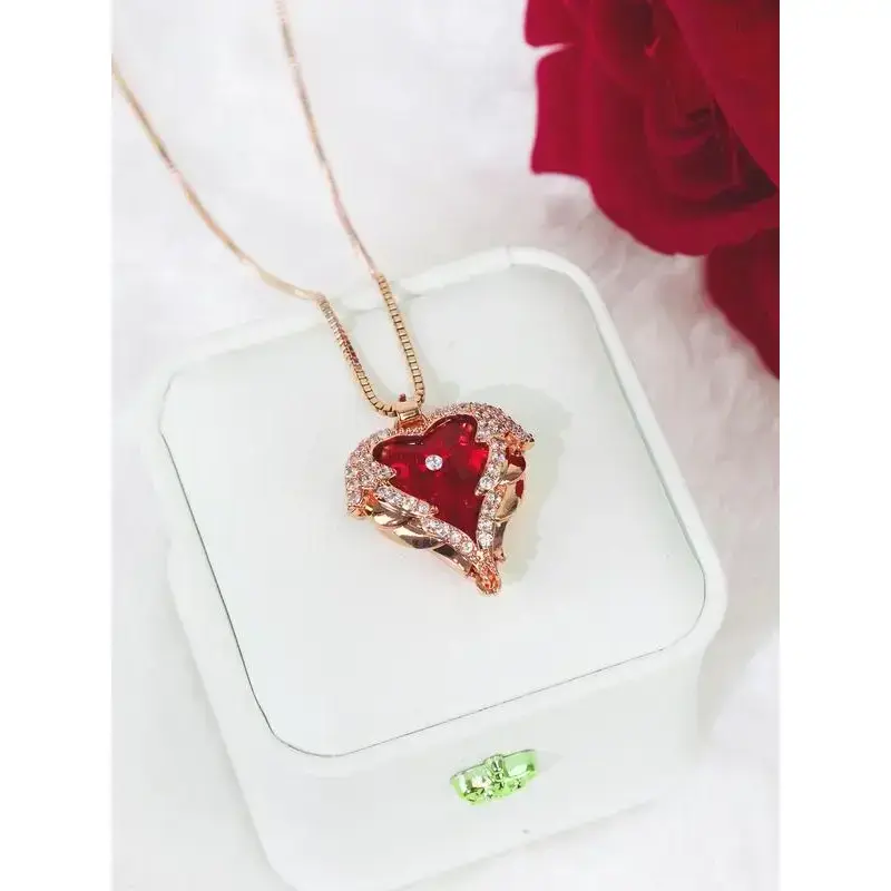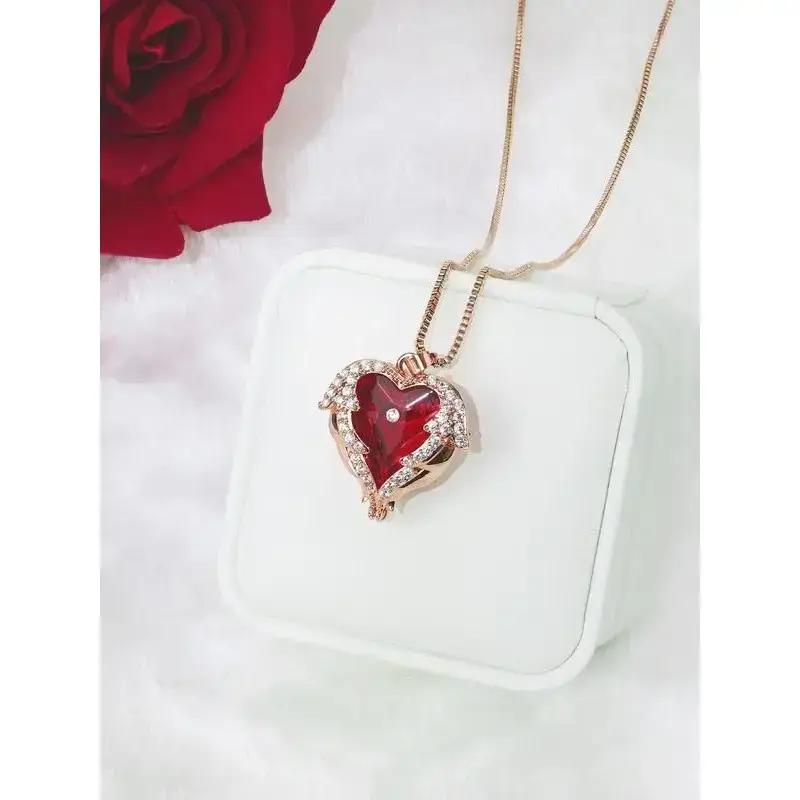 Gifts for Girlfriend, Heart Shaped Pendant Necklace with Rose Gift Box, Rhinestone Decor Necklace for Women for Birthday Gift, Elegant Jewelry for Party, Daily Decor Valentine's Day, Gift for Her, Mother's Day Gifts, Gift Set for Mothers, Gifts for Her