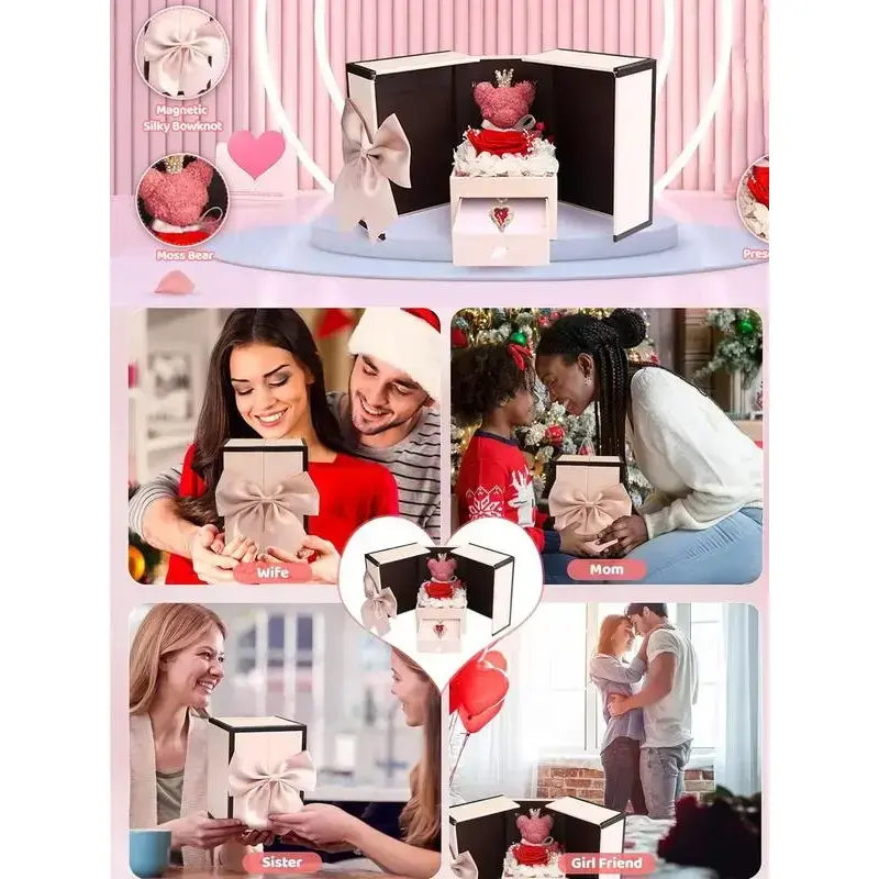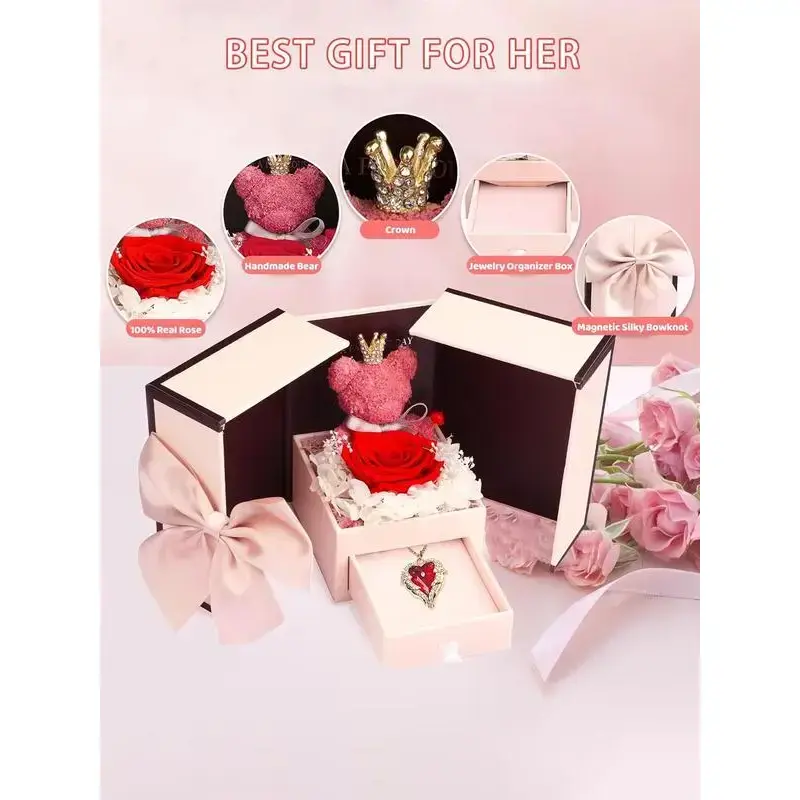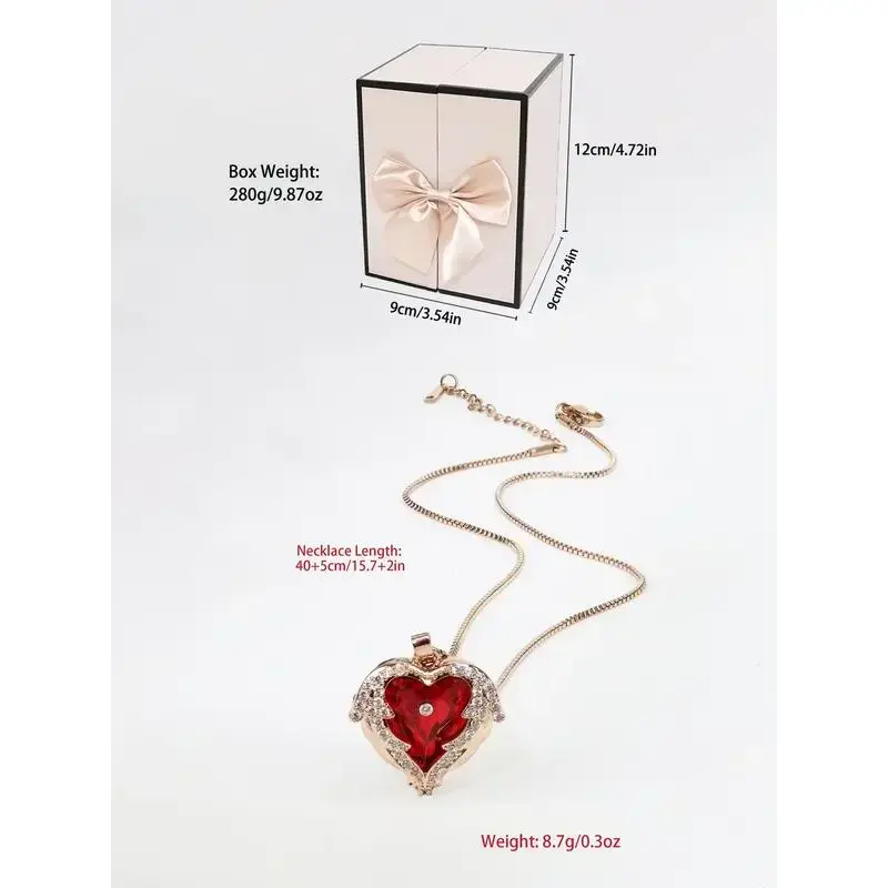 Gifts for Girlfriend, Heart Shaped Pendant Necklace with Rose Gift Box, Rhinestone Decor Necklace for Women for Birthday Gift, Elegant Jewelry for Party, Daily Decor Valentine's Day, Gift for Her, Mother's Day Gifts, Gift Set for