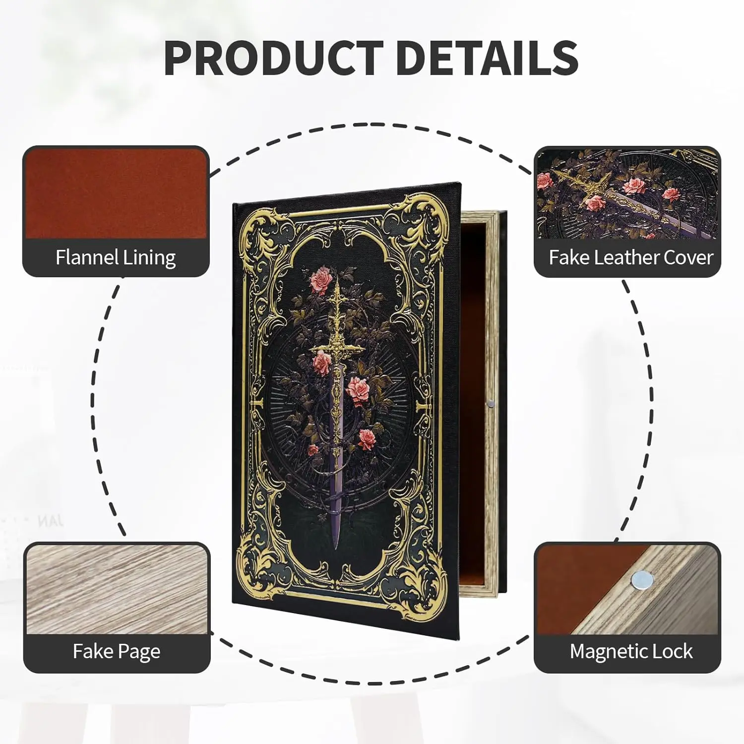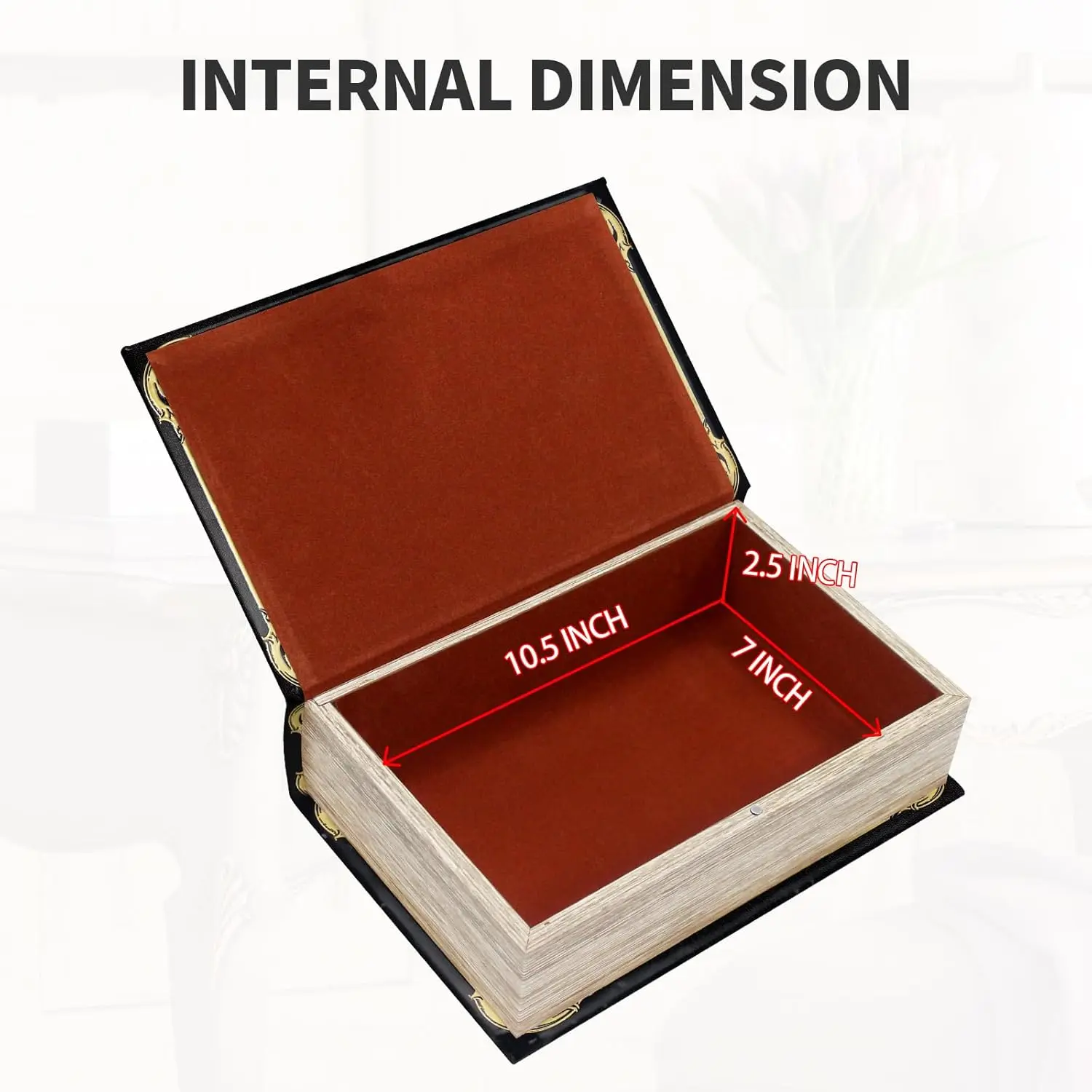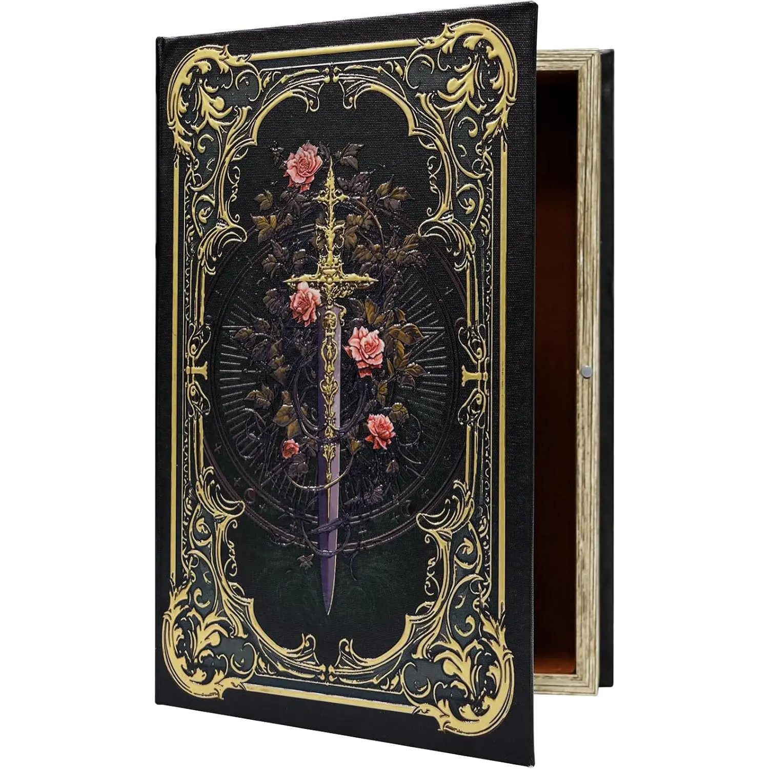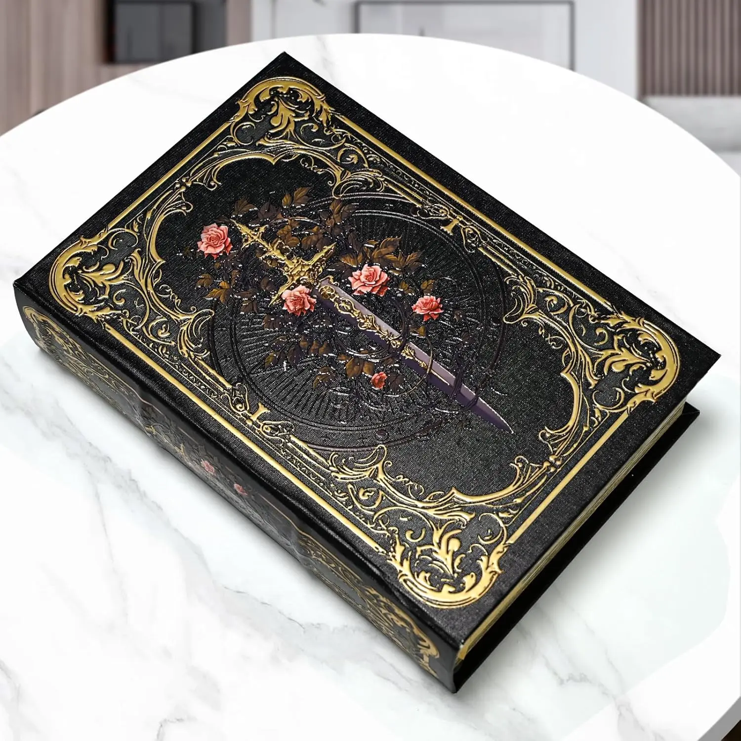 Premium Canvas Book Shaped Box with Gold Foil Decorative Storage,Secret Safe for Valuables, Remote Control Holder Elegant Home Office Decor Large Size Box