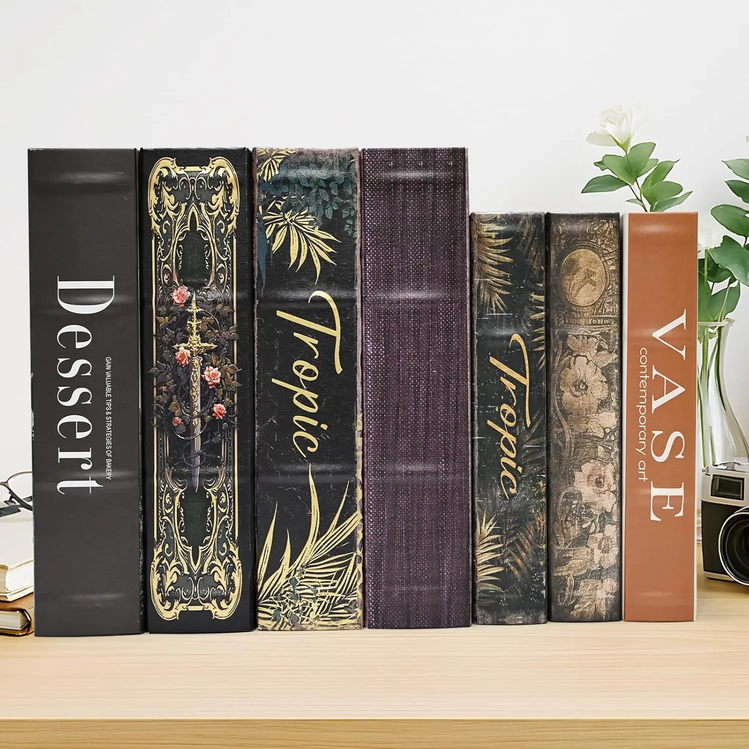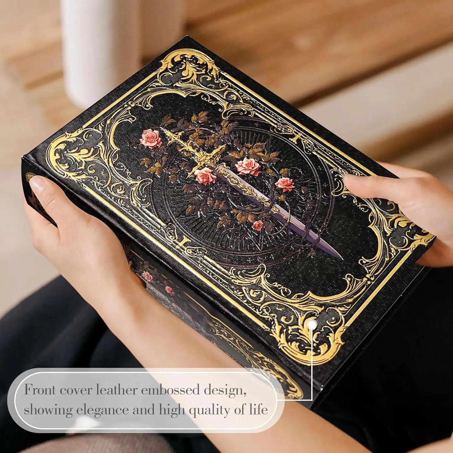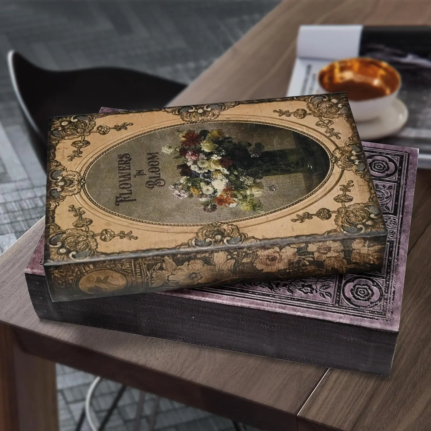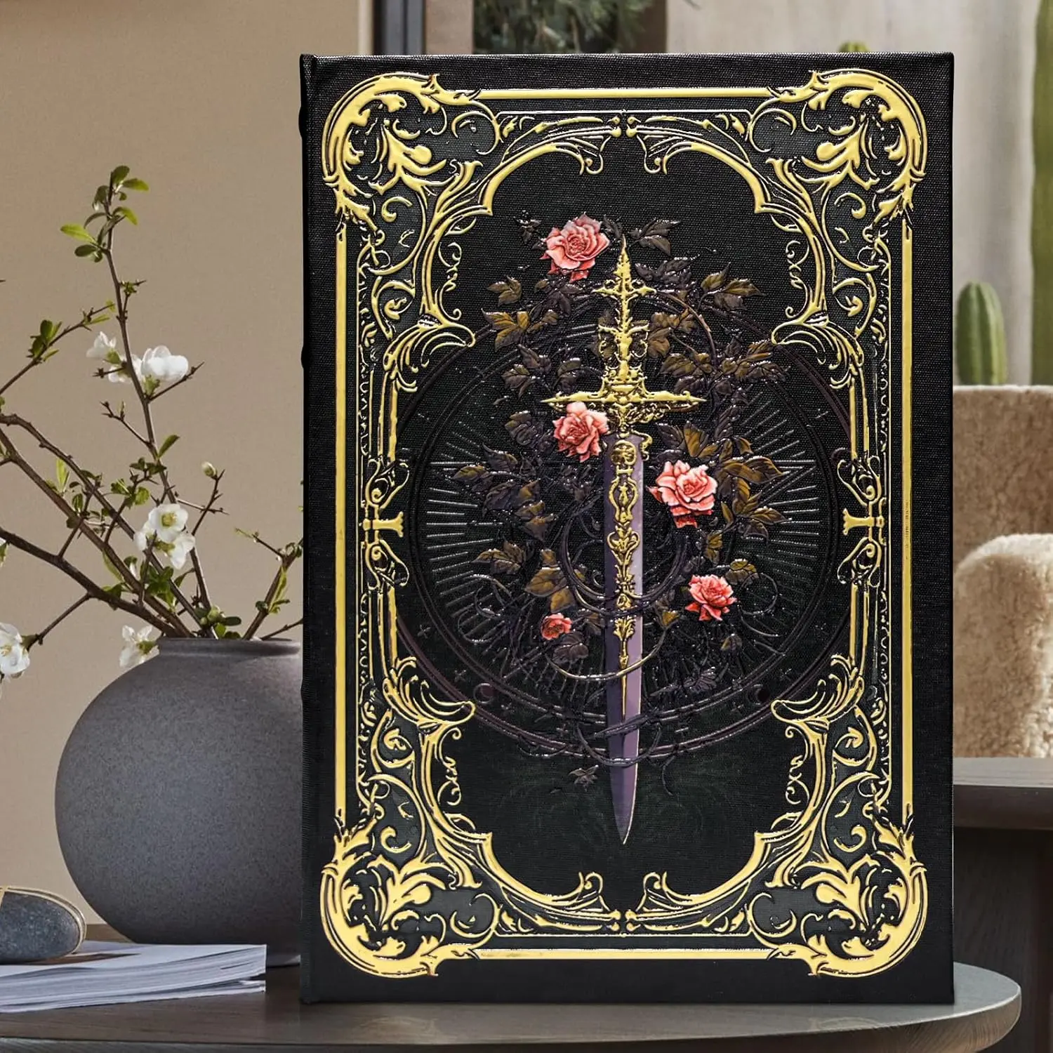 Premium Canvas Book Shaped Box with Gold Foil Decorative Storage,Secret Safe for Valuables, Remote Control Holder Elegant Home Office Decor Large Size Box