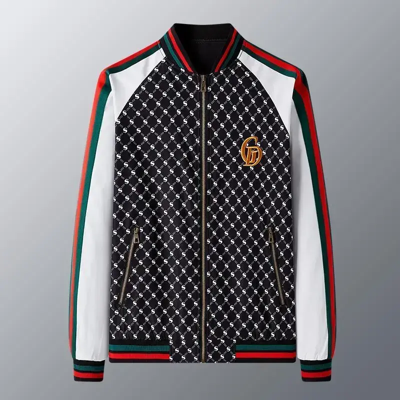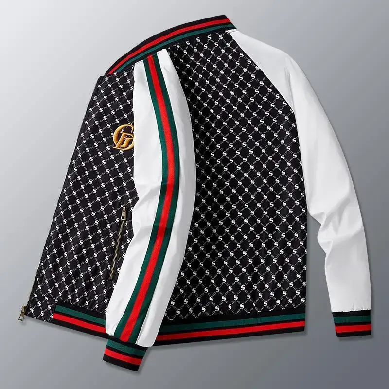 2025 New Spring and Autumn Men's Jacket Trendy Fashion Printed Jacket Casual Baseball Suit Menswear Coats Men's Stand Collar Zip-Up Jacket Tops Long Sleeve