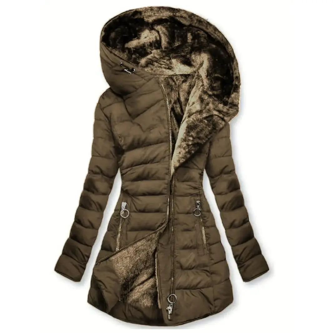 , long-sleeved, form-fitting, warm hooded jacket, overcoat, cotton-padded jacket for women Can be used with raincoat