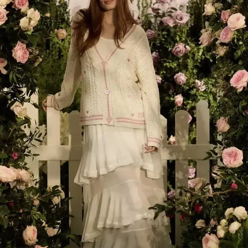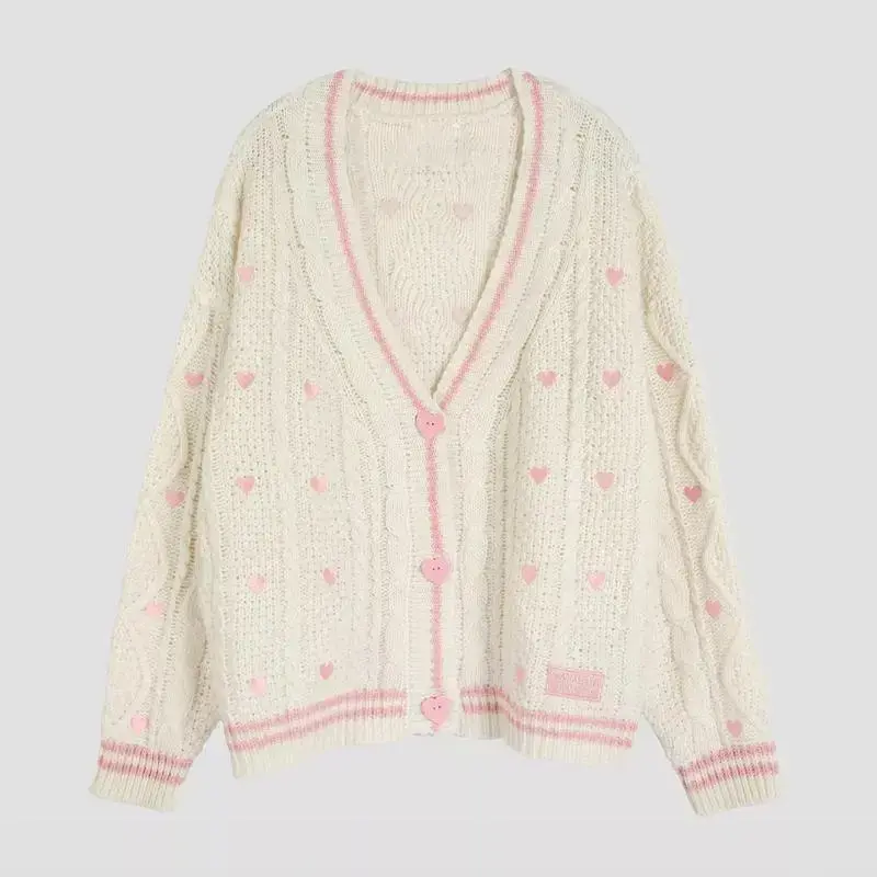 New 2025 Couple Knitted Cardigan - Long Sleeve Knitted Loose Coat - Heart-shaped Patterned Top - Knitted Clothing - Women's Clothing