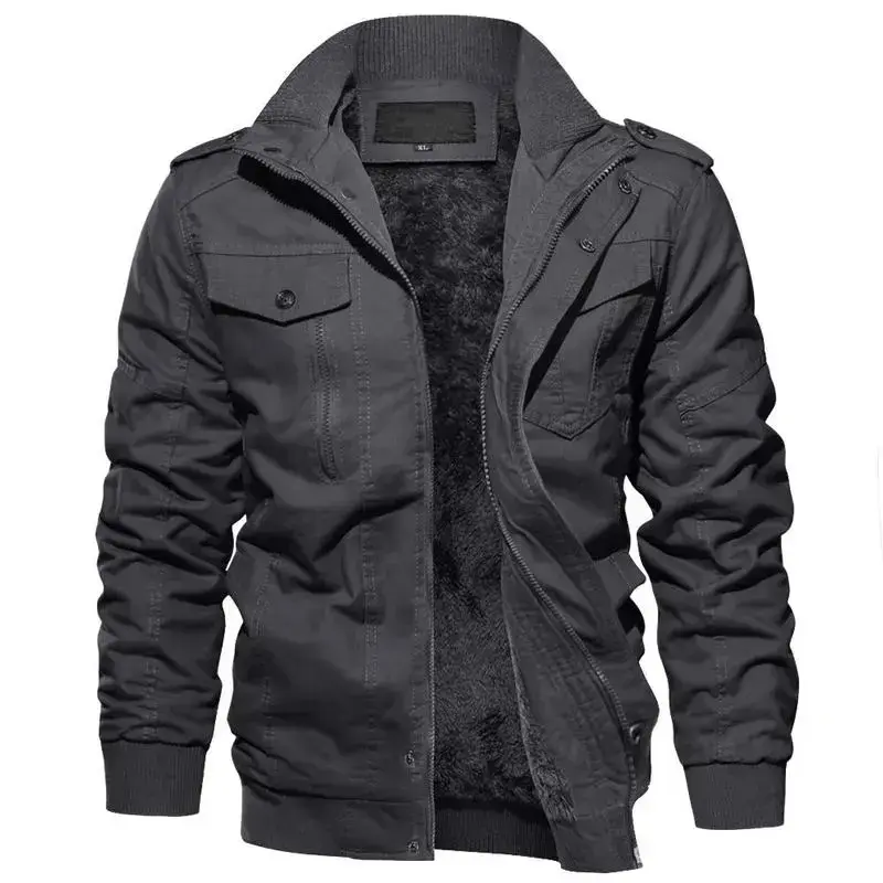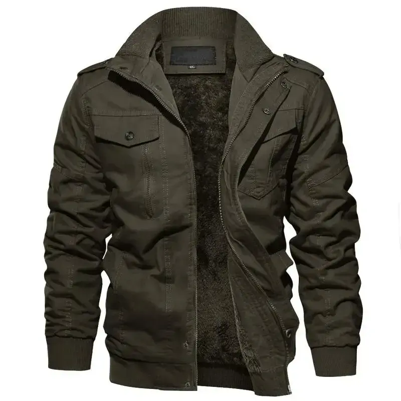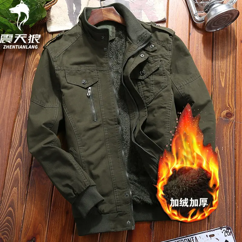whether full opening : Yes Hign-concerned Chemical : None Craft of Weaving : TAT Applicable Season : Autumn And Winter Applicable Scene : Daily Decoration : Pockets Sleeve Style : regular Hooded : No Type : regular Detachable Part : None Thickness : Fleece Lining Material : POLYESTER Closure Type : zipper Cuff Style : Rib sleeve Pattern Type : Solid Collar : Turn-down Collar Style : Safari Style Clothing Length : regular Material : COTTON Outerwear Type : JACKETS Gender : MEN Item Type : Outerwear & Coats Color : balck,green,khaki,navy,gray