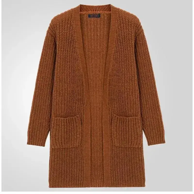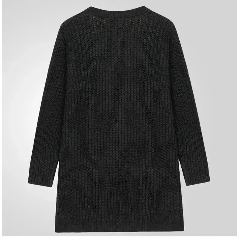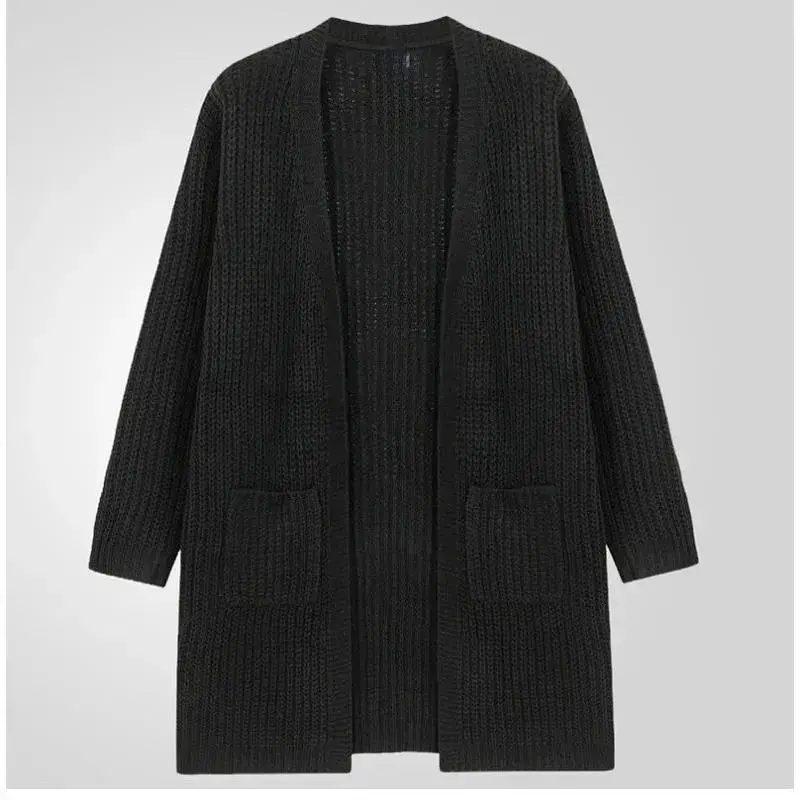 Mid to long length knitted sweater for men in autumn and winter, coarse needle cardigan, sweater jacket
