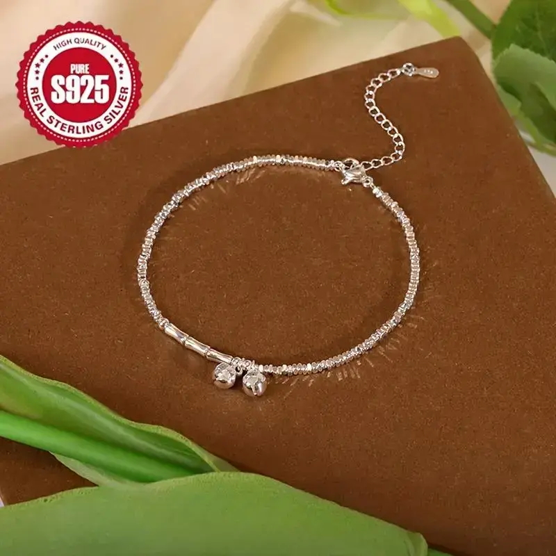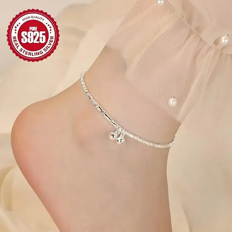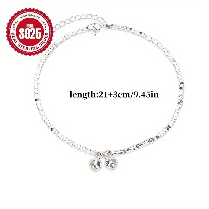 Elegant 925 Sterling Silver Anklet with Bell Charms, Hypoallergenic Irregular Design, Fashion Ankle Bracelet for All Occasions, Ideal Gift for Valentine's Day, Mother's Day, Father's Day, Includes Anti-Tarnish Box, Low Allergy, Si