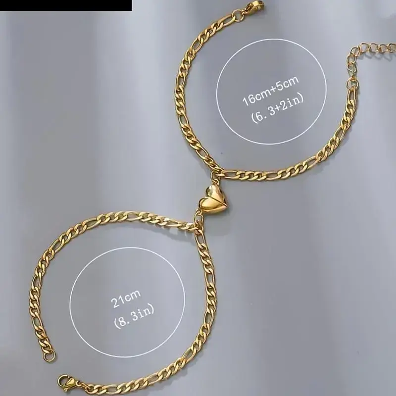 [Novel and Fashion] - Elegant design and exquisite craftsmanship add a sense of fashion to basic looks.This fashion bracelet will add charm to you and become the focus of the audience.It is perfect for daily wear to create an eye-catching look no matter what the occasion. [High Quality Stainless Steel] Stainless steel is the perfect material for making bracelets, its features include: high polished surface and rounded edges, highly rust-proof, non-fading, hypoallergenic and nickel-free.Exquisite craftsmanship makes its luster more durable. [Couple Bracelets]When you wear this couple bracelets and get close to each other, the magnetism will be attracted and combined into a heart, just like you and your loved one are attracted to each other in the crowd. [Gift Idea] Exquisite design, high-quality materials, and exquisite craftsmanship make this fashion bracelet an ideal gift for your wife, daughter, mother, sister, girlfriend, best friend or yourself, and occasional surprises make life more colorful and happy. [After-sales Service] We pursue product quality and customer satisfaction. If you receive a defective item, please contact us as soon as possible, and we will provide you with a satisfactory solution within 24 hours.