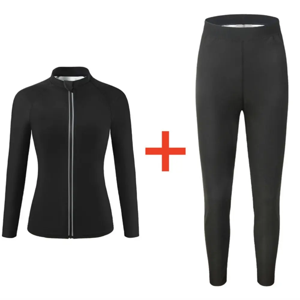Women's Sauna Sweat Suit Set ✨ Perfect for Yoga & Fitness Workouts ✨ This Women's Sauna Sweat Suit Set includes a long sleeve zip-up jacket and high-waist leggings. Made from a stretchy polyester blend (92% polyester, 8% spandex), it offers medium stretch for comfort. The solid color design and high neckline add to its versatility. Ideal for all seasons, this set is machine washable but not suitable for dry cleaning.