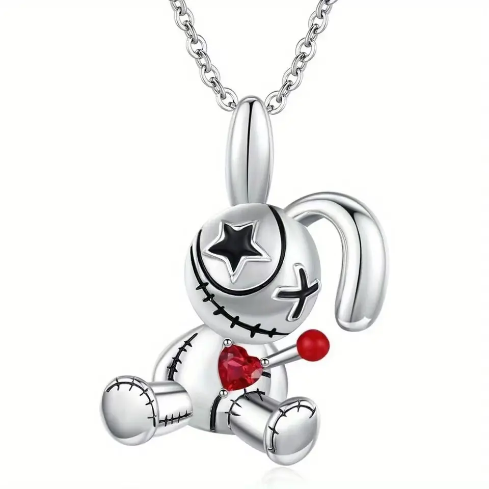 Dark Gothic Curse Doll Necklace, Creative Fun Punk Halloween Pendant, Unique Design Jewelry for Party & Cosplay Accessories, Gothic Witch Jewelry