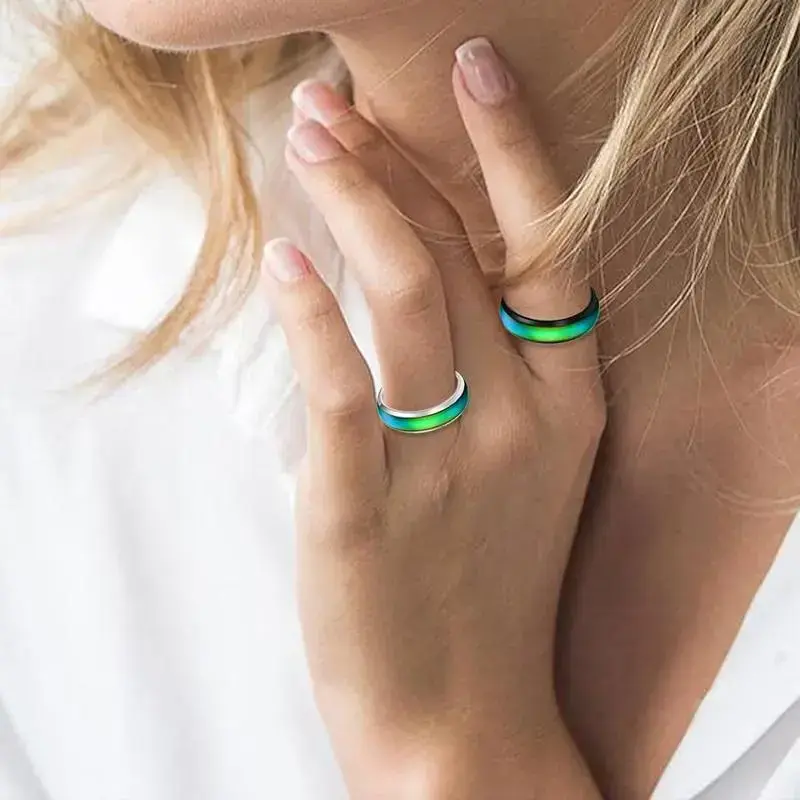 Vibrant Mood Ring - Stainless Steel Thermal Discoloration Design with Multi-Color Options, Adjustable Fit for Men and Women, Perfect Accessory for Daily Outfits and Special Occasions