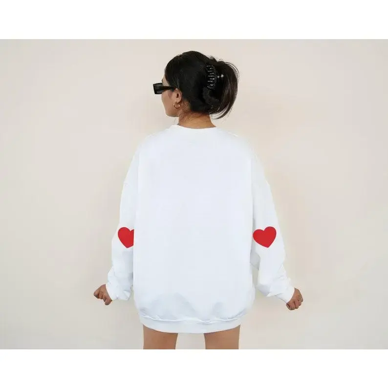 Celebrate love with our adorable Valentine's Sweatshirt, featuring charming heart elbow patches that add a playful touch to your outfit. This cute sweatshirt is an ideal choice for teachers or anyone looking to spread love and joy this season! CARE INSTRUCTIONS------- Turn inside out. Machine wash cold. Tumble dry low. Do not bleach. Do not iron directly on design. These sweatshirts are a classic unisex fit. Please refer to the size charts in the listing photos for details, or message us for assistance finding the perfect fit!