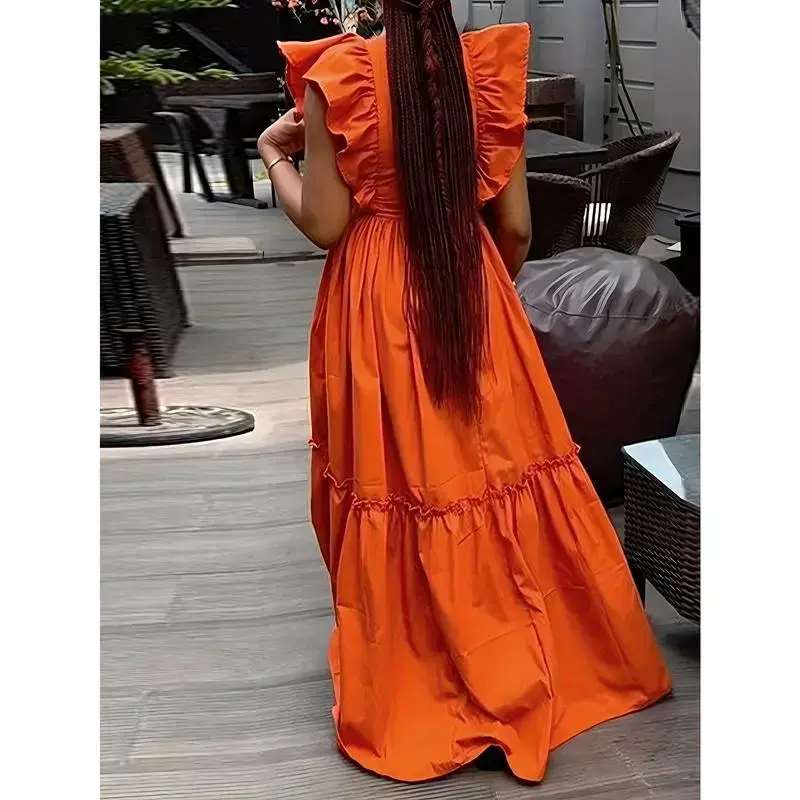 [Restocked] AUSELILY Women's Off The Shoulder Dress Wedding Guest Dress Summer Casual Long Ruffle Party Side Split Beach Maxi Dresses with Pockets