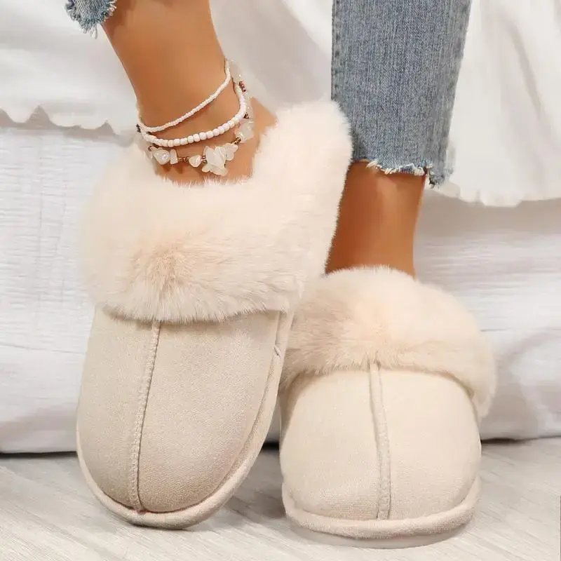Cozy Women's Fleece-Lined Slip-On Moccasin with Fluffy Detail - Non-Slip Winter Home Slippers on Flat Sole Platform.(gift)