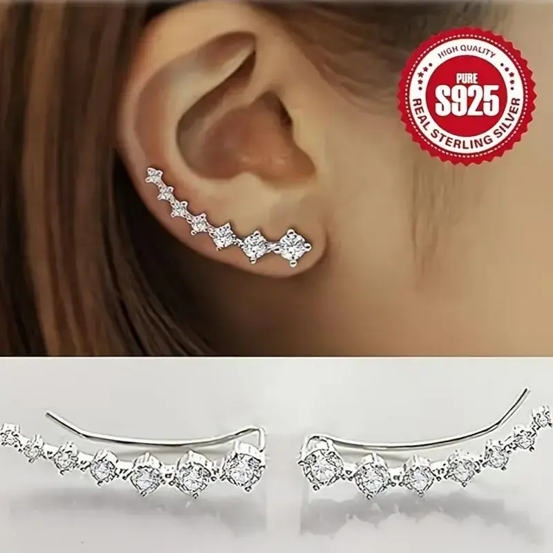Elegant 925 Sterling Silvery Zirconia Stud Earrings - Hypoallergenic, Classic Punk Style for Women - Ideal for Daily Wear & Parties