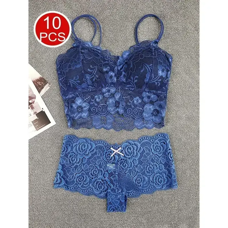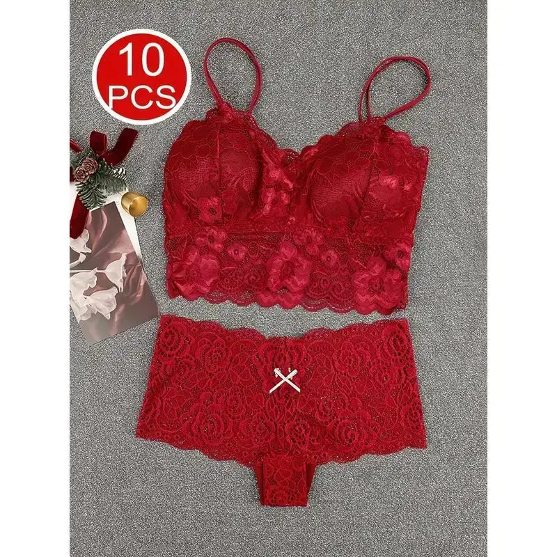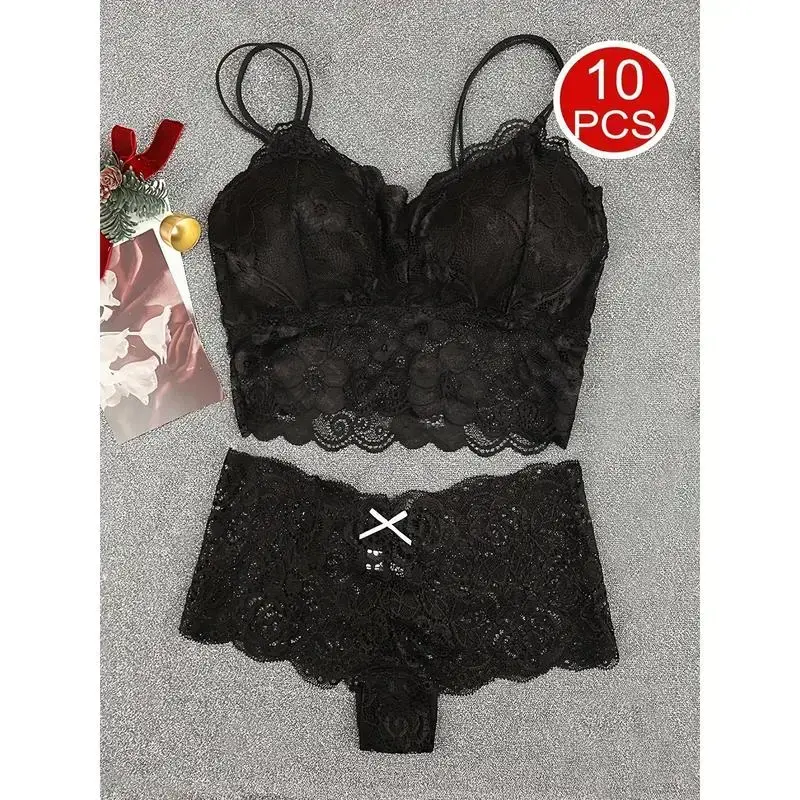 Women's underwear and panties set, wireless, comfortable daily elegant lace bra base, beautiful back, seamless chest, detachable bra, lace underwear, women's underwear and pants
