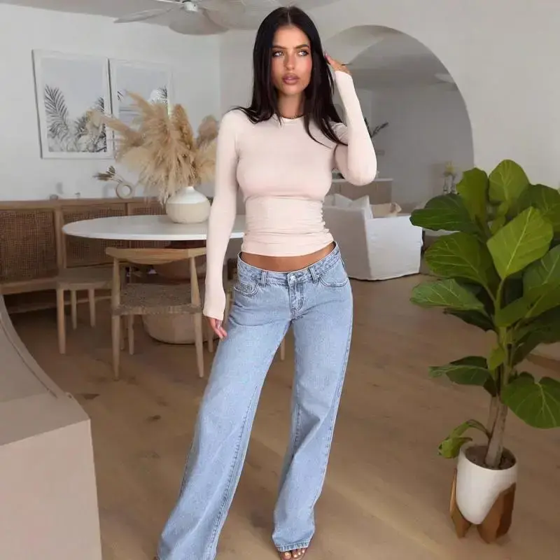 2025 Low Waist Jeans Fashion Retro Straight-Leg Pants Loose Denim Trousers Denim Trousers Women's KND Low-Rise Baggy Jeans Streetwear Light Blue Bottoms