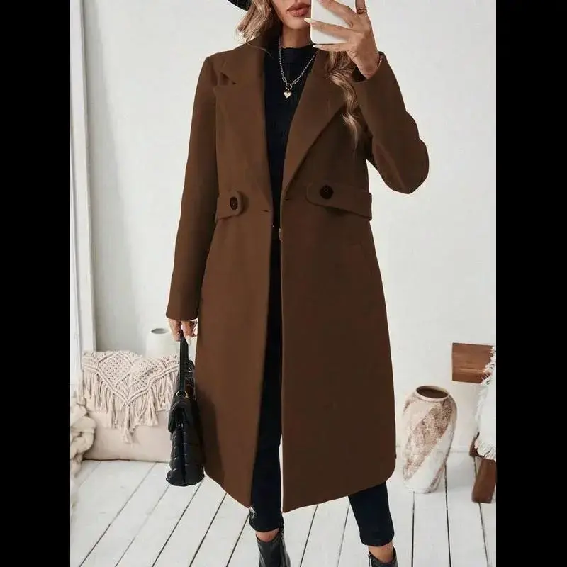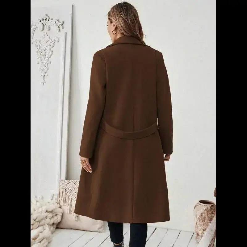 Halloween Women's Notched Collar Camel Wool Blend Coat With Belt Long Coat Fall Coat Sleeve Open Front Blazer Faux Fur Lapel Coat Double Breasted Wool Coat Double-Breasted Pea Coat