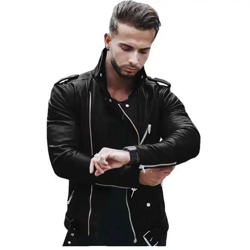 New men's leather jackets in large sizes, stylish and slim-fitting leather outerwear Menswear Coats Tops Long Sleeve