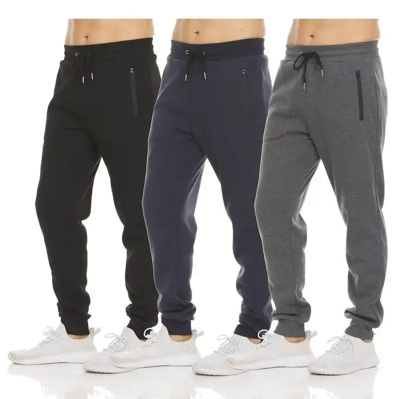 Men's 3-Pack Fleece-Lined Joggers Sweatpants with Heat Seal Zipper Side Pockets, Ribbed Cuffs, Elastic Waistband & Adjustable Outer Drawstring