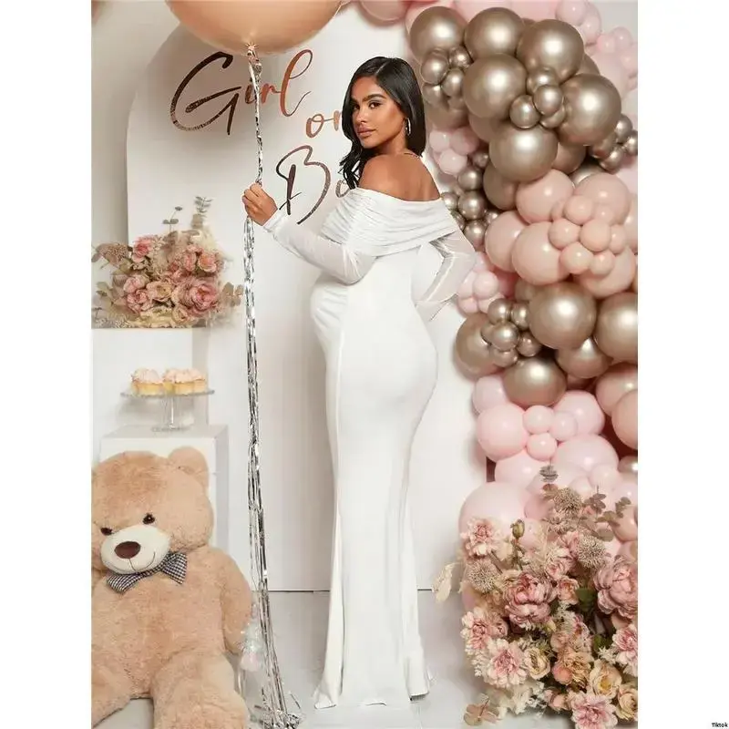 Shower Baby Evening Mermaid Shoulder - Off Ruched Maternity Loomaby Elegant Dress For Party
