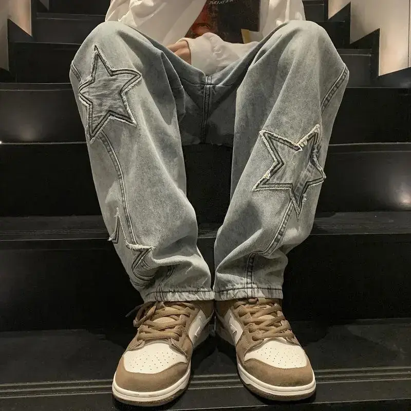 Material: Y2k star Jeans is made of cotton blend denim fabric, which are skin-friendly and breathable, durable to wear. Y2k jeans men baggy will provide you a comfortable wearing experience as well Design: Baggy hip hop pants men, straight wide leg trousers, baggy jeans for women y2k, loose fit, 90s denim pants, classic 5 pockets, button closure and zipper fly, star embroidered jeans never will out of style Match: High waist graphic jeans for men are great to pair with simple t shirt, blouse, vest, sweater, jackets, coat, sneakers, canvas shoes, sport shoes for a trendy look Occasion: Black baggy jeans trendy denim jeans suitable is office, working, traveling, formal, school, dating, party, streetwear, vacation, shopping, Christmas, or any other outdoor activities Hand/machine washable in cold water, hang dry, do not bleach