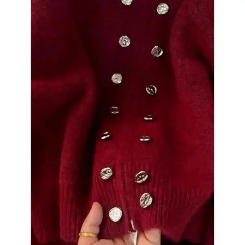 Luxury Fluffy Knitted Cardigan Sweater Design Double Breasted Sweater Coat Women Autumn High-end Lazy Zipper 2000s Y2k Knit Top