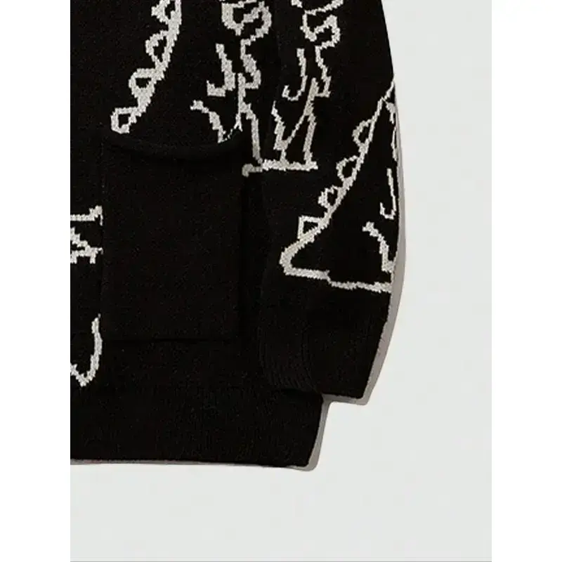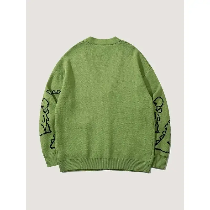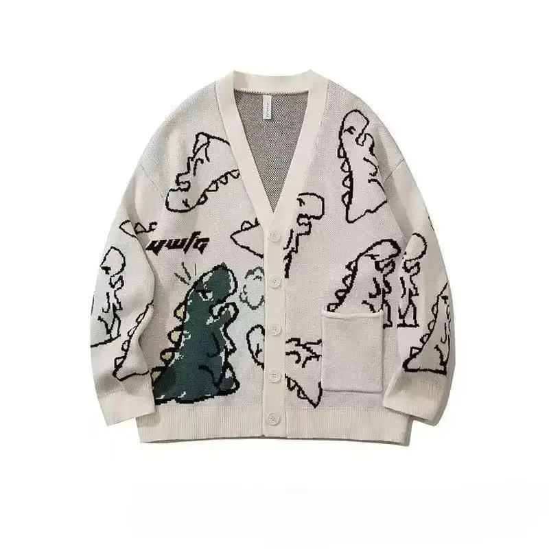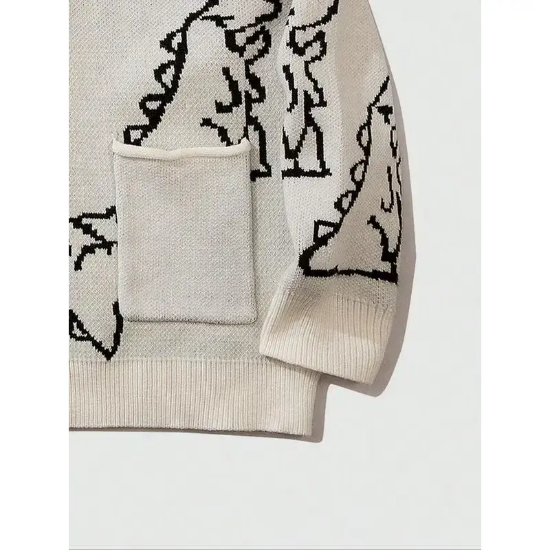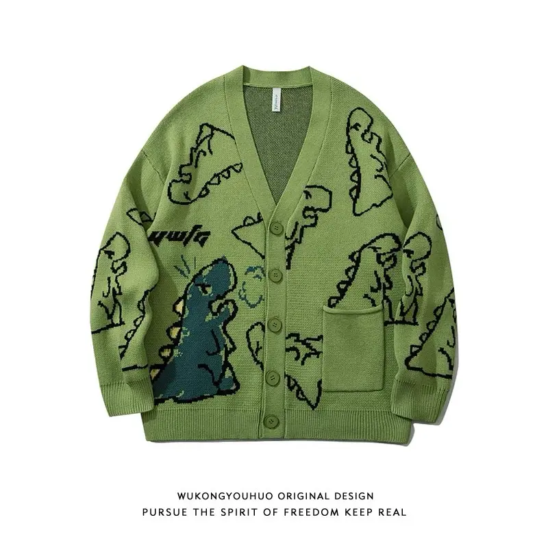 Men's Cartoon Dinosaur Print Pocket Button Front Cardigan, Loose Casual Drop Shoulder Long Sleeve V Neck Knitwear for Spring & Fall, Fashion Men's Knit Clothing for Daily Wear, Cartoon Print Sweater
