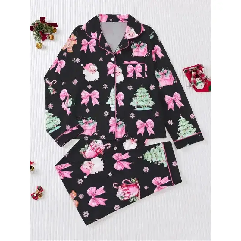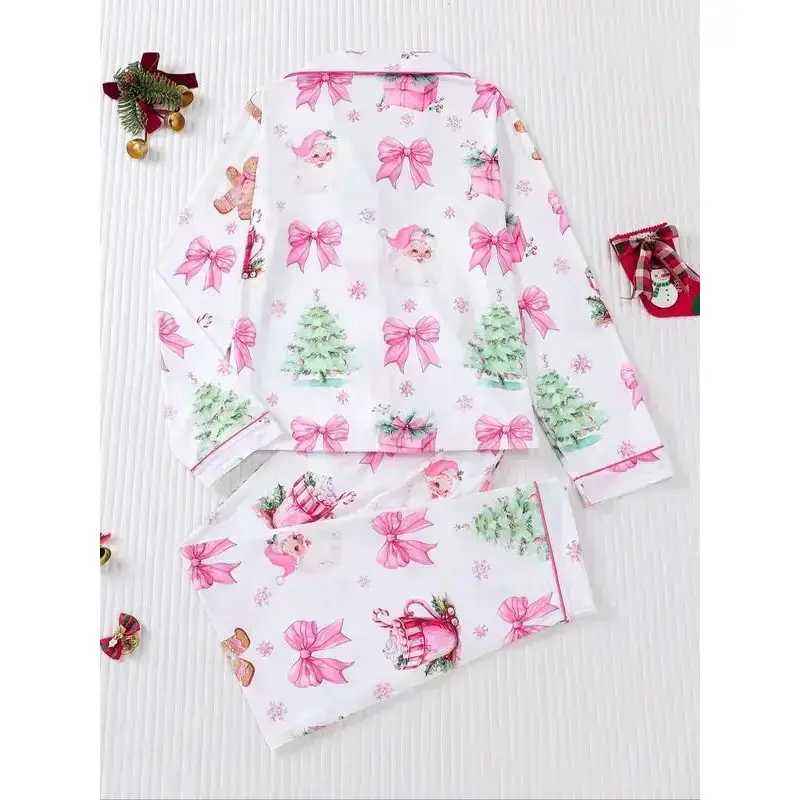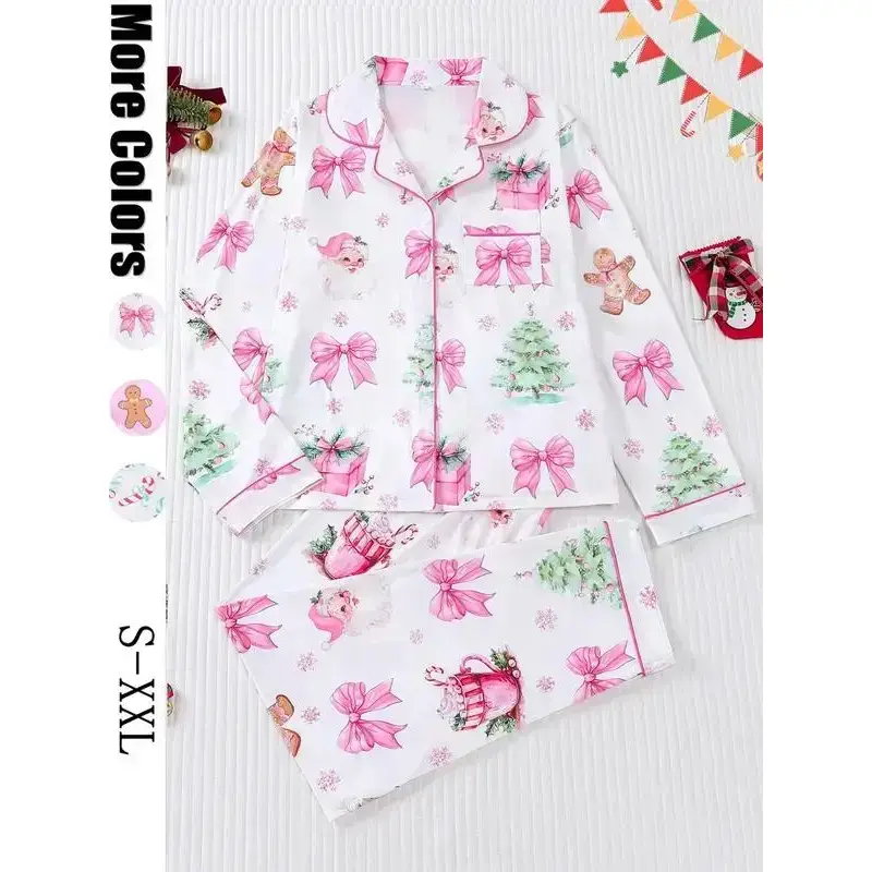 Women's Christmas Pajama Set, Soft Long Sleeve Shirt & Elastic Pants, Holiday Party Sleepwear, Casual Fall Winter Home Wear Matching Fabric