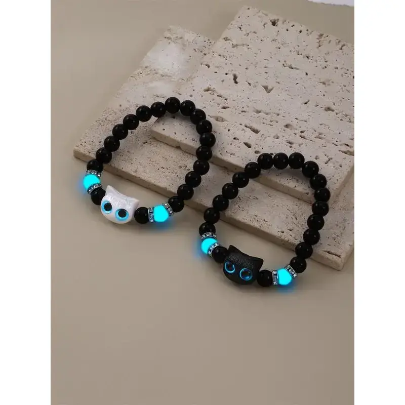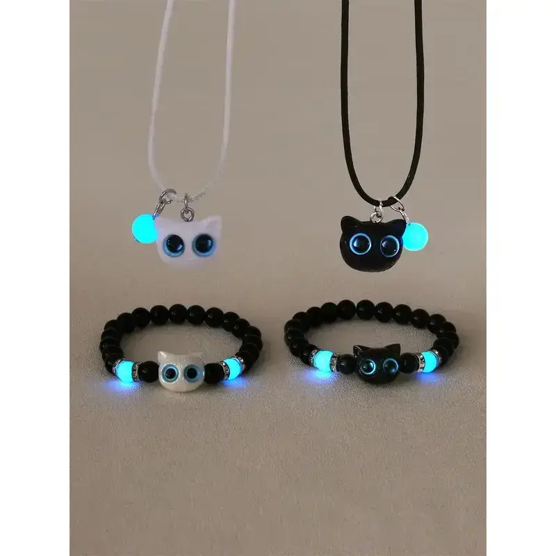 luminous beads cute cat gloves and necklace Best friend gift jewelry set