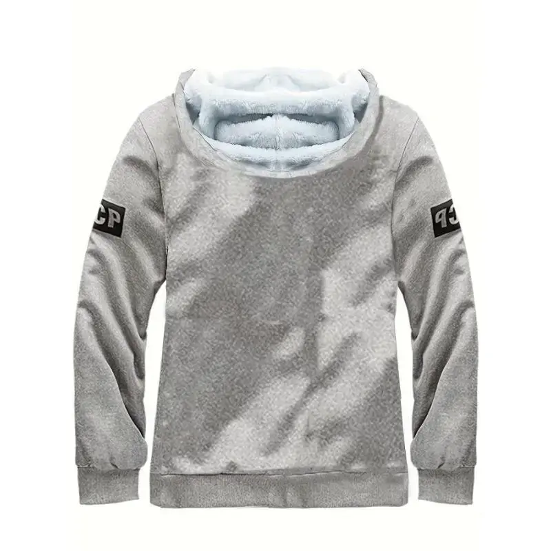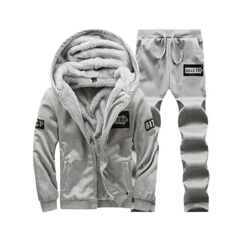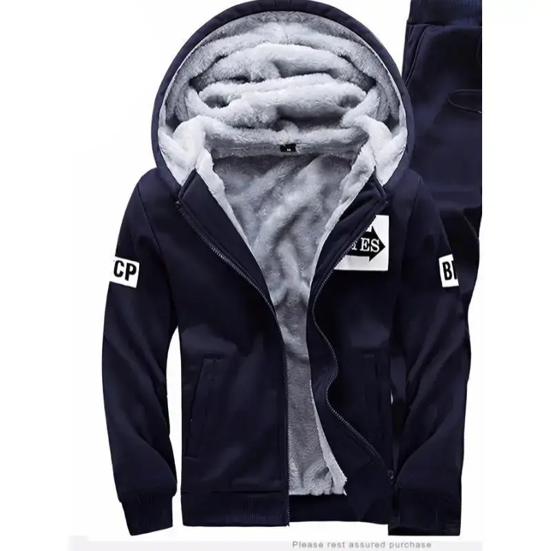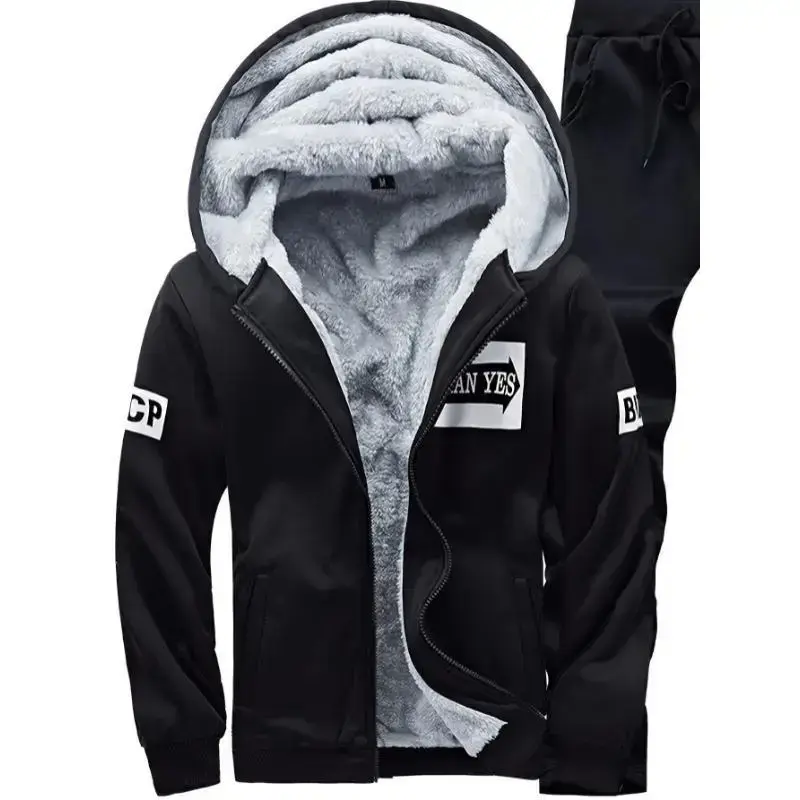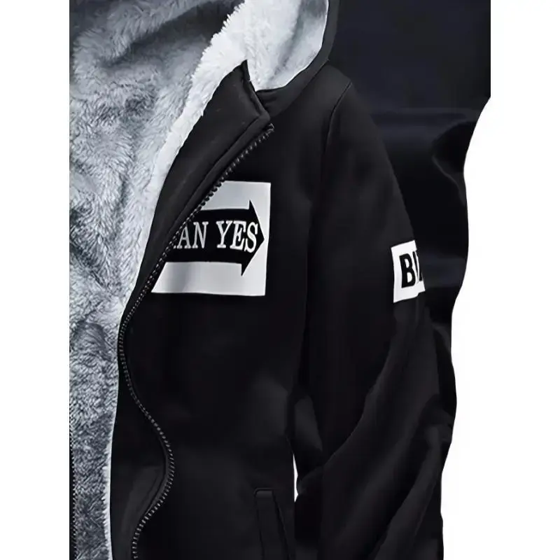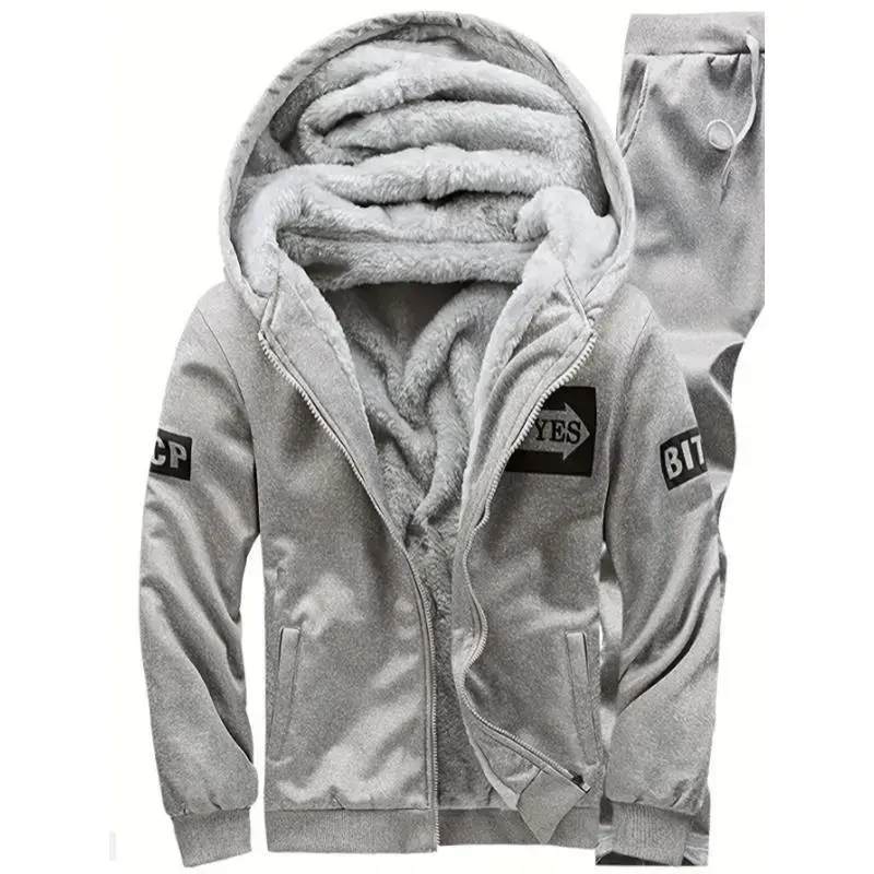 Men??s Velvet-Lined Hooded Tracksuit Set ?C Cozy Winter Athleisure Loungewear, Zip-Up Hoodie & Joggers, Streetwear men gifts graphic tees Fabric Polyester