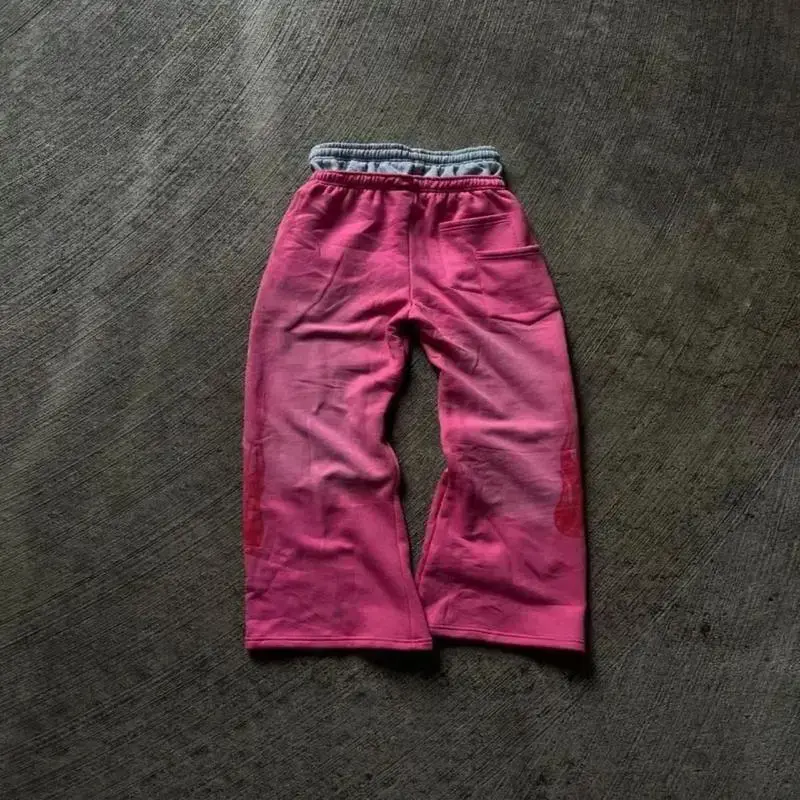 Shiyi Trading Pink Double Layer Sweatpants Y2K Mens Womens Gothic Hip Hop Letter Patch Retro Baggy Pants Casual Elastic Waist Jogging Pants Menswear Trouser