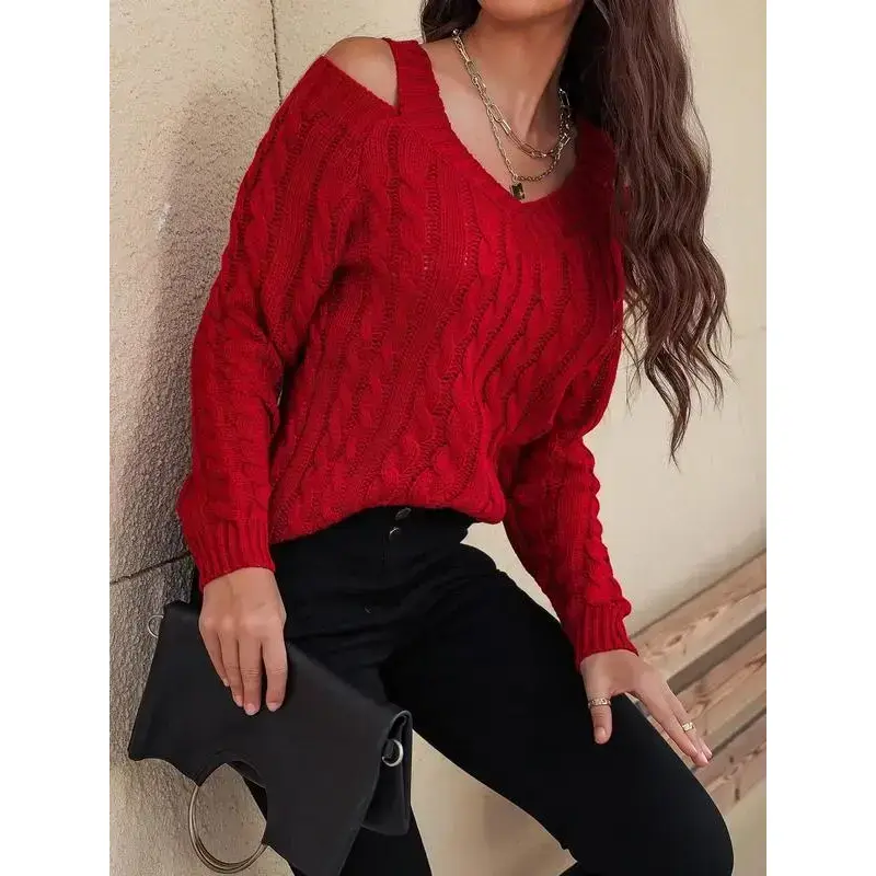 【Cold Shoulder】: Our cold shoulder feature adds a trendy touch, providing a unique look compared to traditional sweaters, enhancing your wardrobe with a modern flair. 【Quality Material】: Crafted from high-quality acrylic, this sweater ensures warmth and durability, meeting the demands of both fall and winter seasons. 【Knitting Technique】: The intricate cable knit weaving offers a rich texture that elevates the overall appearance, making it a fashionable choice for daily outfits. 【V Neckline】: The flattering V-neck design not only highlights the collarbones but also provides a chic look suitable for various occasions and layering options. 【Fitted Cut】: The fitted silhouette emphasizes your shape, making it ideal for pairing with high-waisted jeans or skirts, adding sophistication to any outfit.