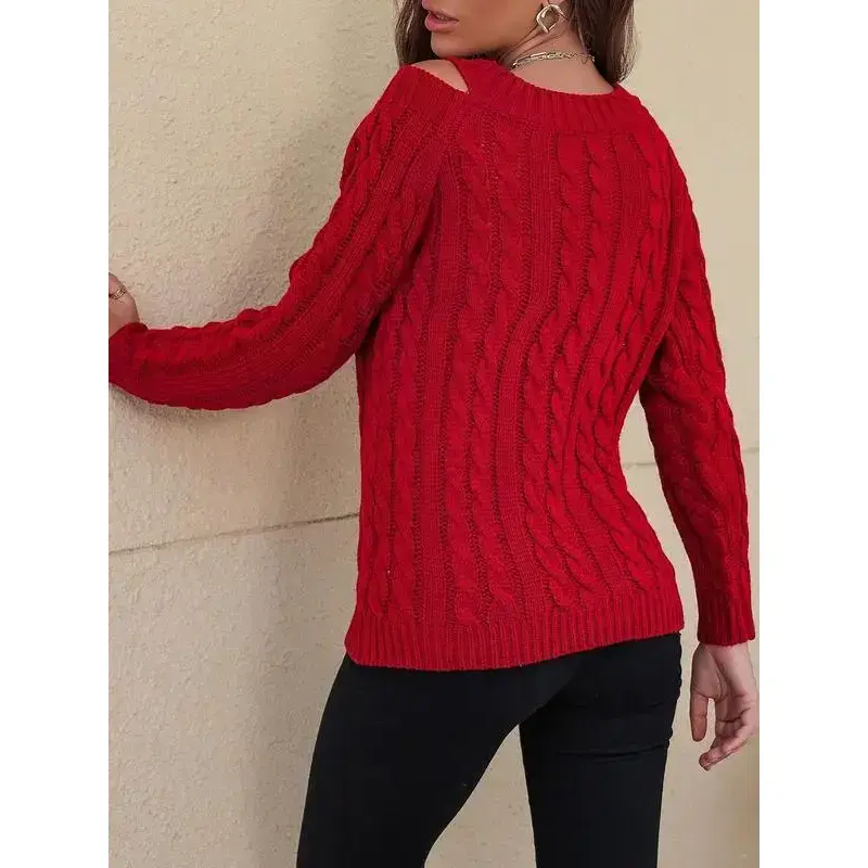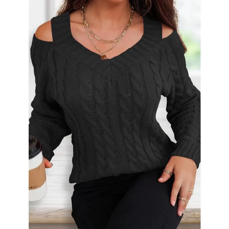 Women's Plain Cold Shoulder Cable Knit Sweater, Casual Elegant Long Sleeve Jumper for Fall & Winter, Fashion Ladies' Knitwear for Autumn Daily Wear, Classy Tops