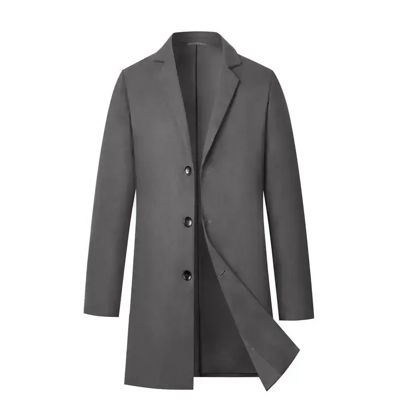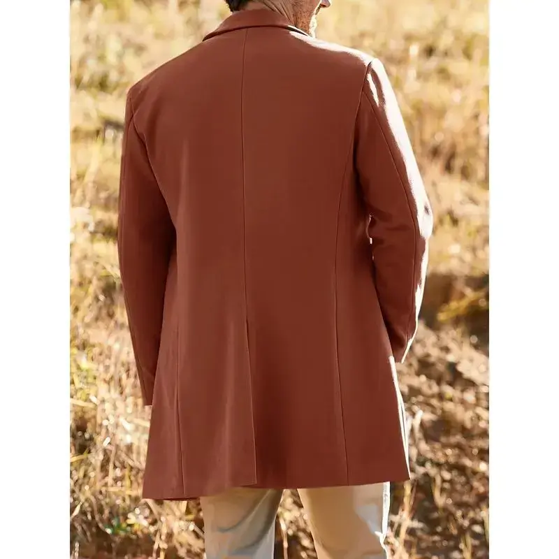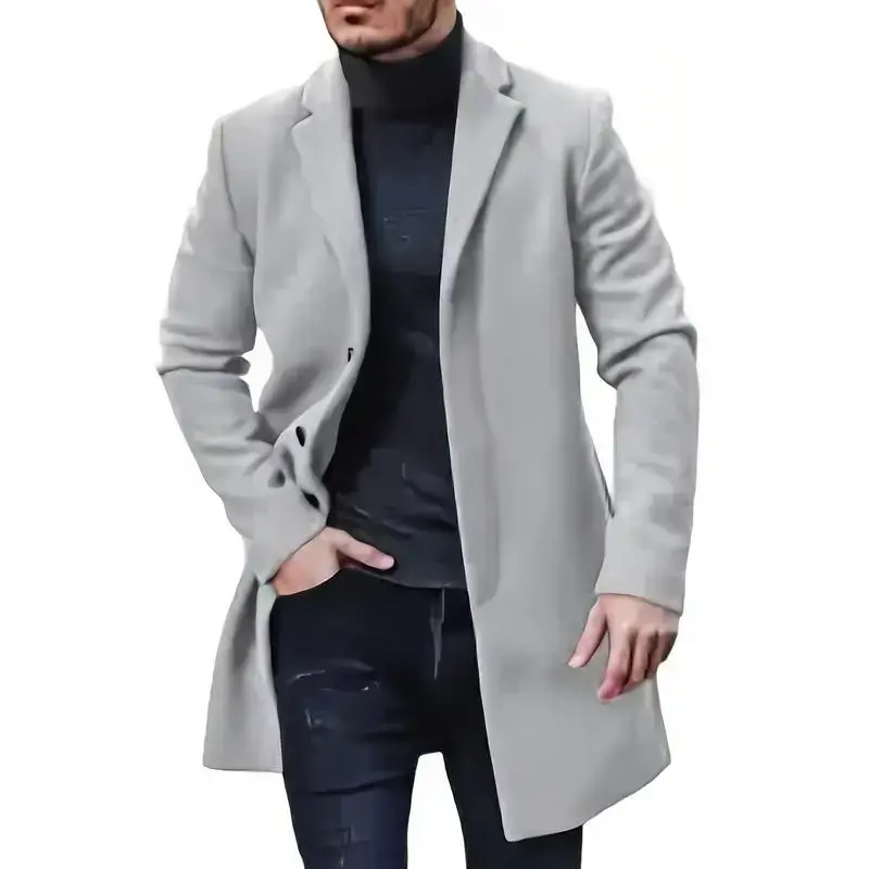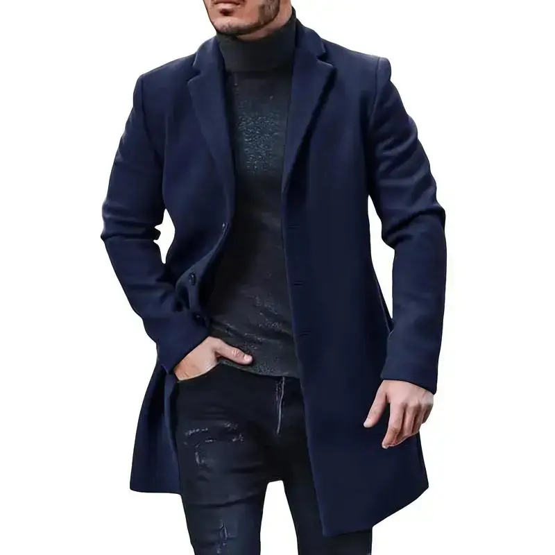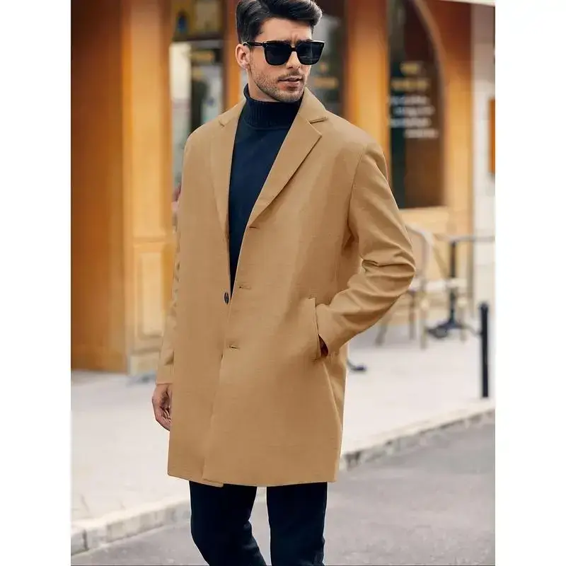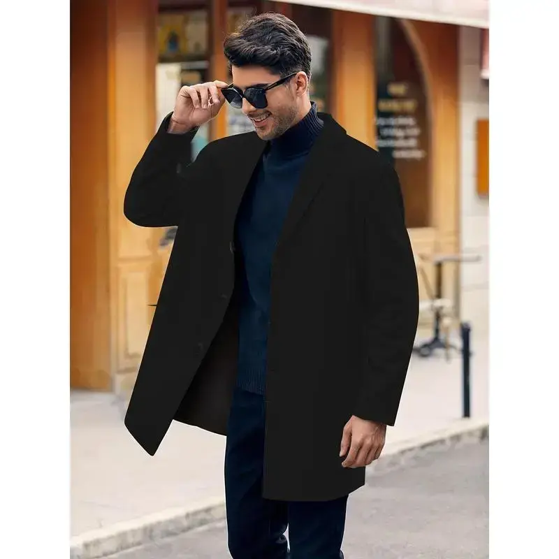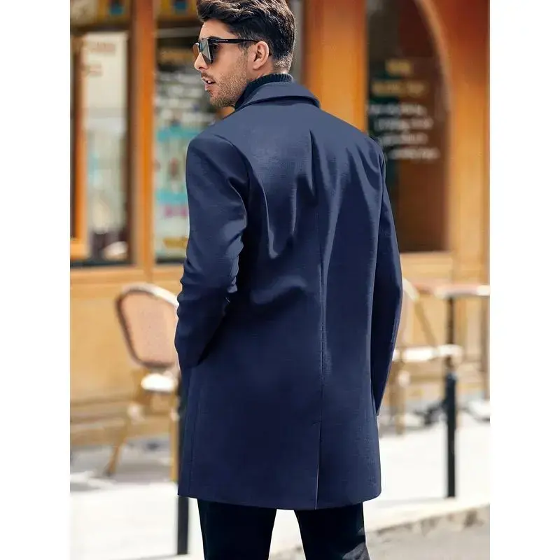 Men's casual trench coat-soft warm notched collar single-breasted pea coat for fall/winter, outdoor cloth
