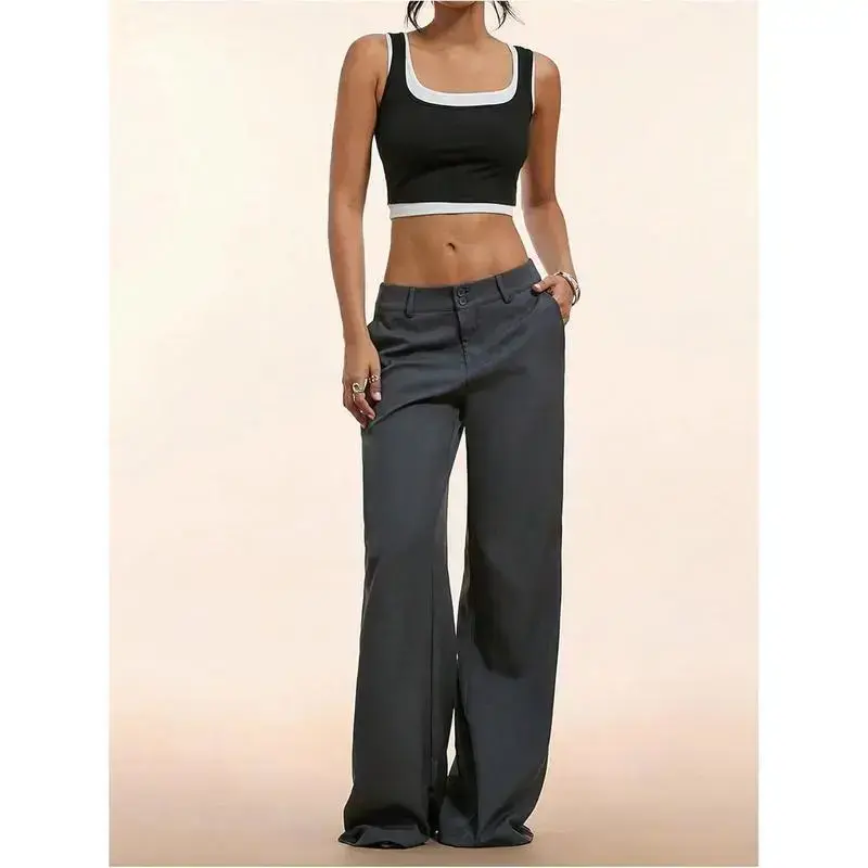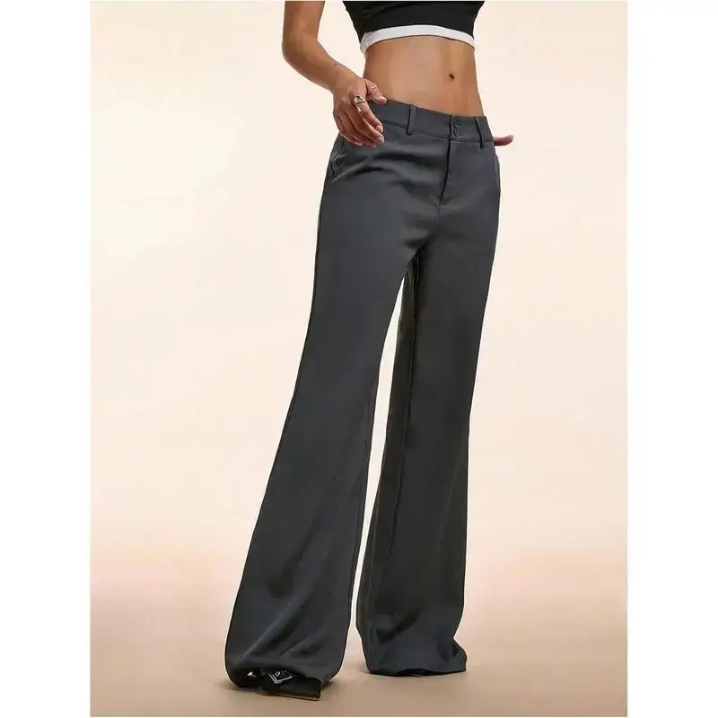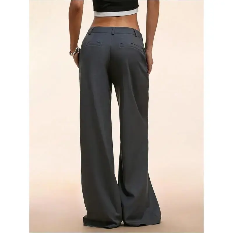 Women's Low Rise Trousers Dress Pants Dressy Low Waisted Wide Leg Straight Business Casual Work Slacks Pants