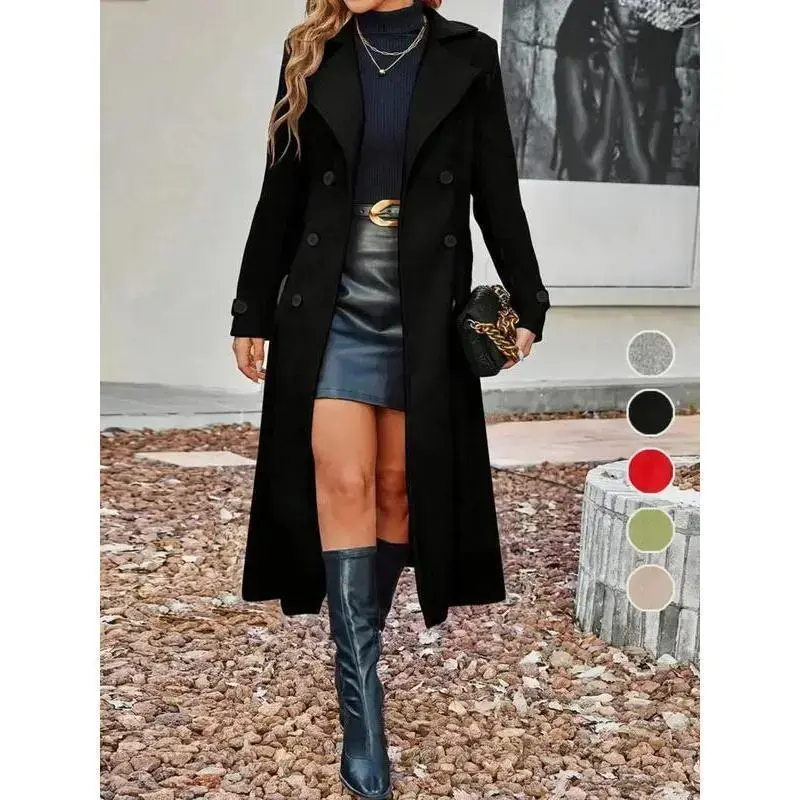 Women's Solid Double Button Lapel Woolen Coat ?Elegant and Versatile? This women's woolen coat features a solid color design, perfect for autumn and winter.It's a casual yet elegant piece, ideal for Valentine's Day gifts.The double button lapel adds a touch of sophistication.Crafted from woolen goods, it offers warmth and style.A great choice for daily wear, this long-sleeved coat is suitable for all seasons. Detailed Features Materials: Woolen goods Sleeve length: long sleeve Pattern: Plain Embellishment: Double button Style: Commute Composition: Polyester Care Instructions For best results, cool iron the coat. Follow these simple steps to maintain its quality. The weaving method is woven, ensuring durability. This coat is a must-have for women seeking a blend of comfort and style.
