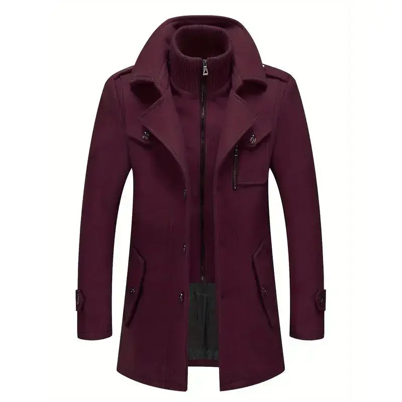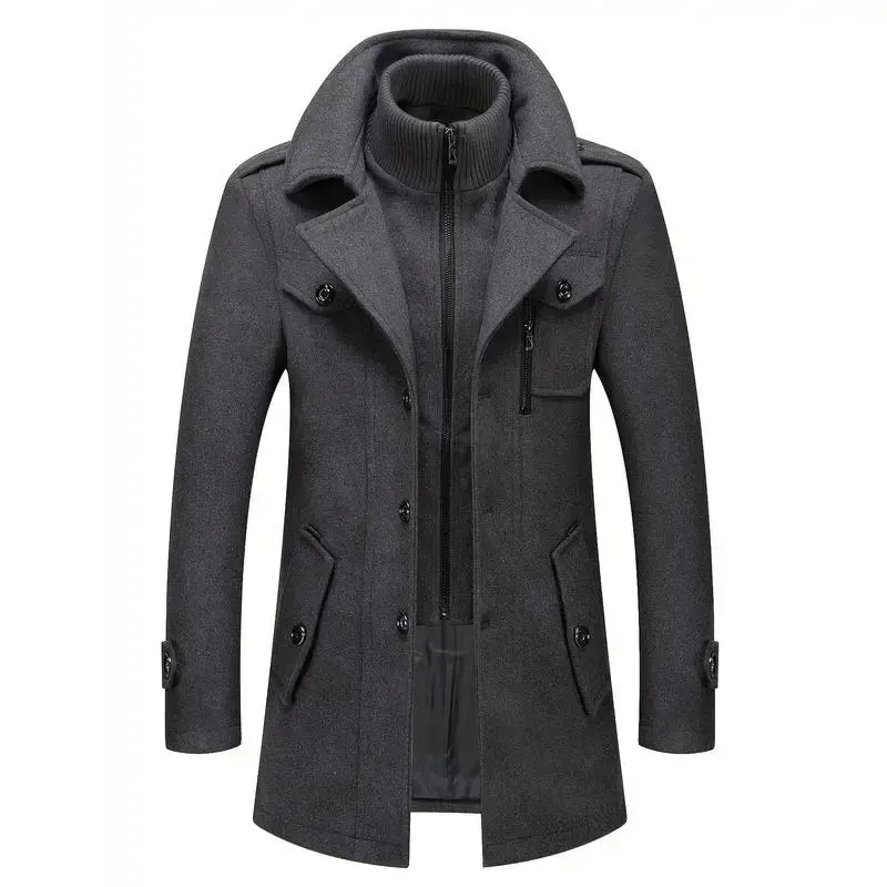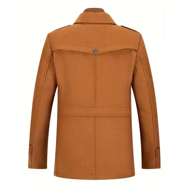 Men's Stand Collar Wool Blend Pea Coats With Removable Inner Collar Single Breasted Overcoat,Suitable for Autumn and Winter Seasons