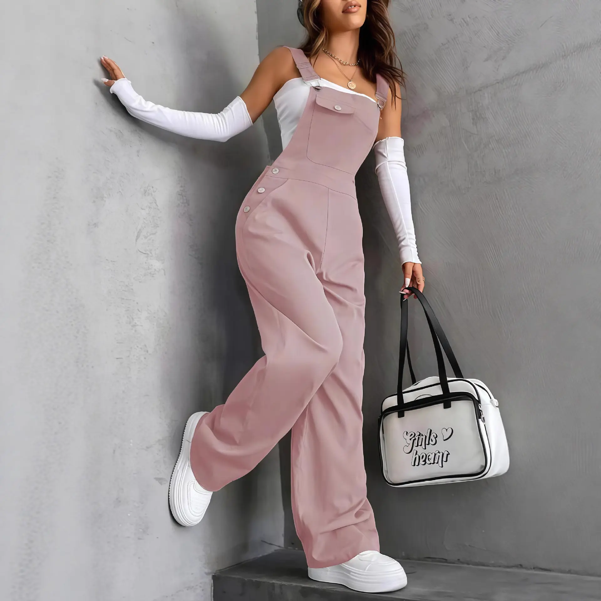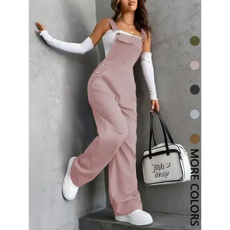 [Practical Pockets]: Featuring functional pockets that enhance usability, these overalls are perfect for keeping essentials handy while on the go. [Year-Round Wear]: Designed for all seasons, these overalls provide wearability across different weather conditions, ensuring versatility in your wardrobe. [Fitted Shape]: With a tailored fit, these overalls flatter your silhouette while allowing for comfortable movement during daily activities. [Easy Care Fabric]: Crafted from durable materials that are simple to maintain, these overalls retain their shape and color wash after wash.