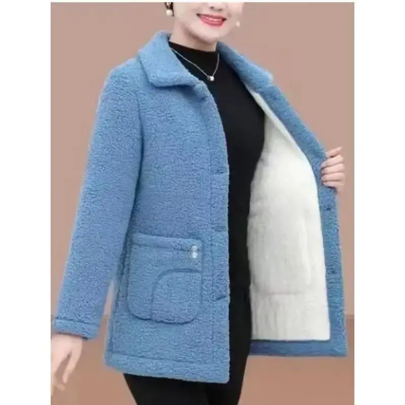 Women's Clothing Velvet Thickened Lamb Wool Long Sleeve Coat Warm Coat Autumn Winter Coat Solid Color Plus Size Women's Jacket