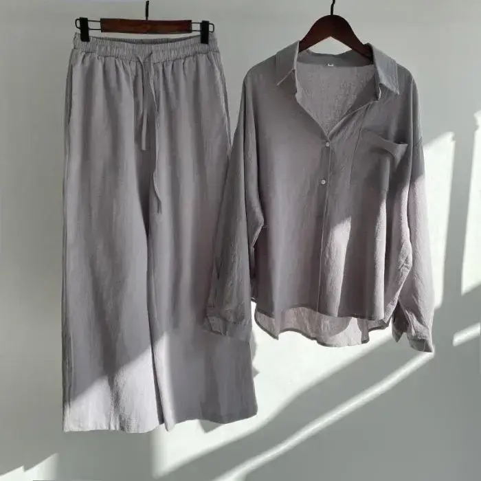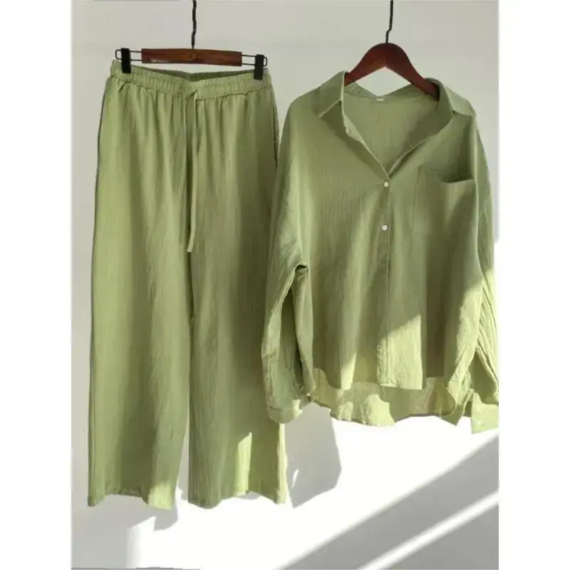 Spring Summer Women's Two Piece Casual Long Sleeve Shirt Women's Suit Fashion Button Casual Female Wide Leg Pants 2 Piece Sets
