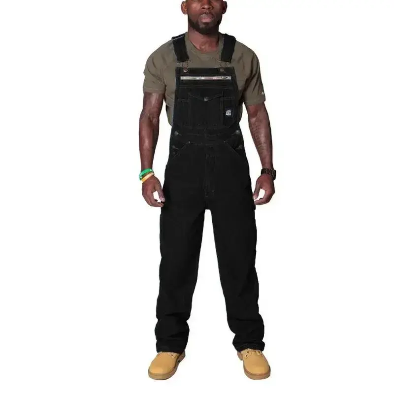 Men's Denim Overalls with Straps Ripped Denim Work Pants Menswear Suits