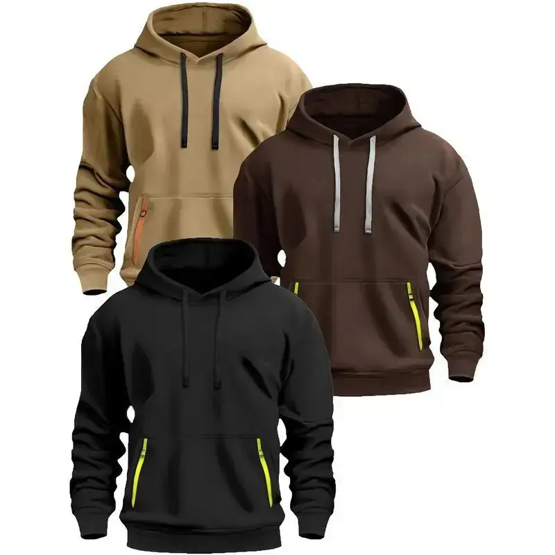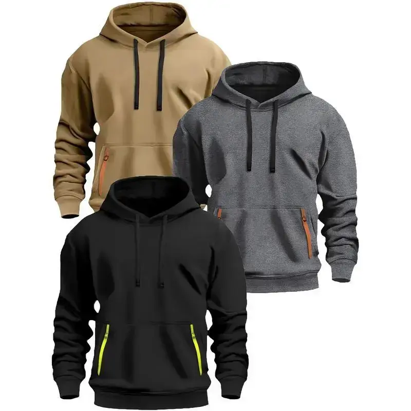 3pcs Men's Fleece-Lined Hooded Sweatshirts 220gsm Heavyweight Casual Pullovers with Adjustable Drawstring Hood Kangaroo Pocket & Ribbed Cuffs Machine Washable for Autumn Winter Menswear Tops Black Gray Grey??gift??