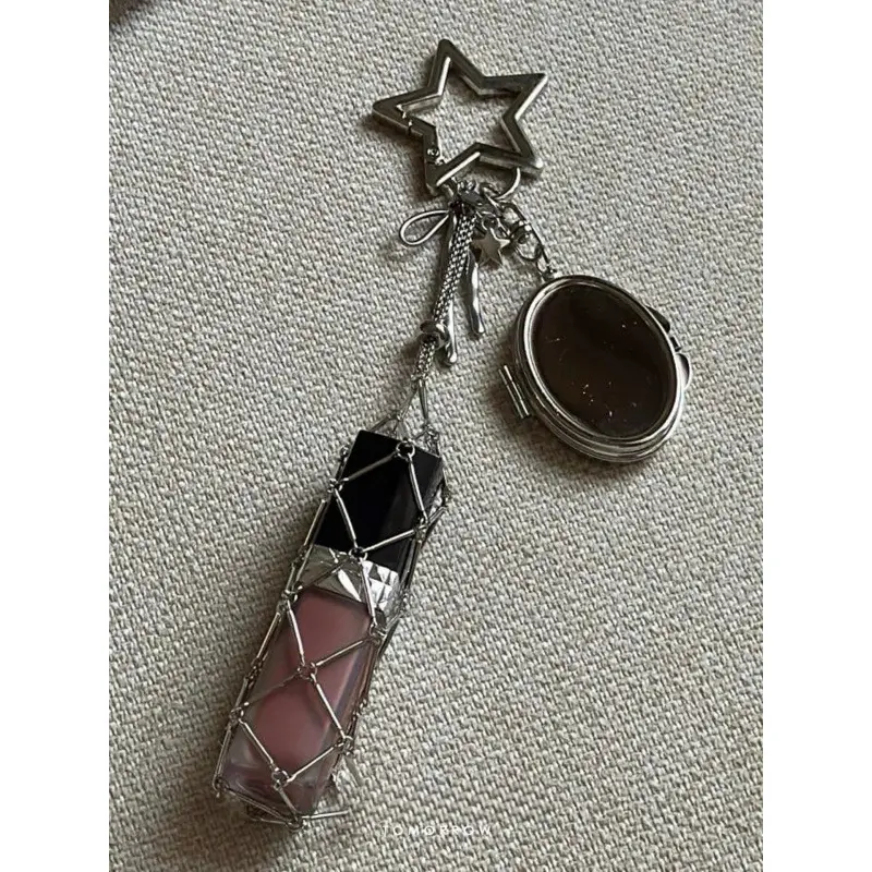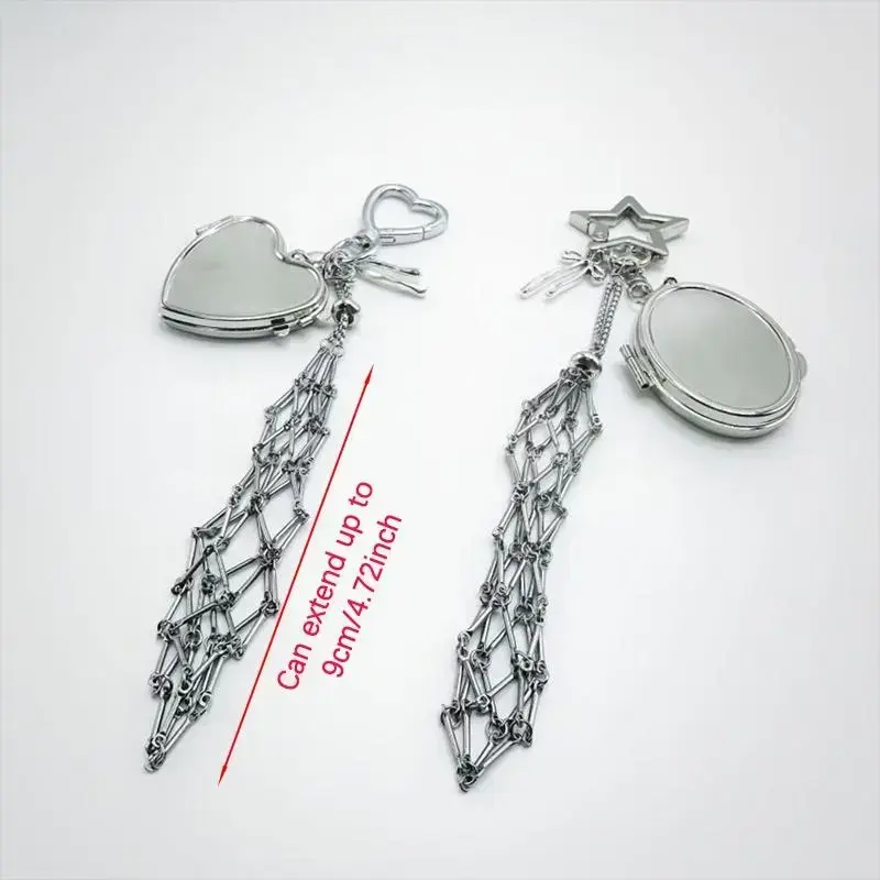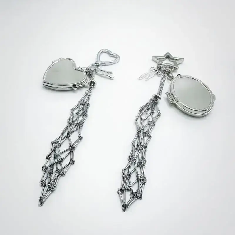New Year Heart Star Makeup Mirror Keychain, Portable Lipstick Holder, Dual-Sided Love Design, Car Key Ring Accessory