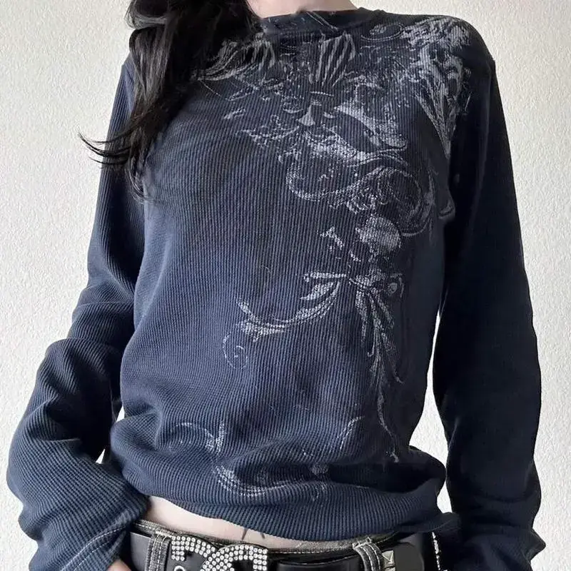 【Personalized women's clothing】Women Y2K Goth Long Sleeve Shirts Retro Graphic Fairy Grunge Tops Fall Spring Teens T Shirt Streetwear