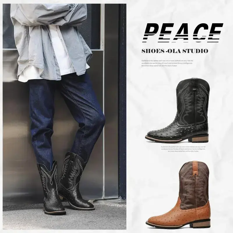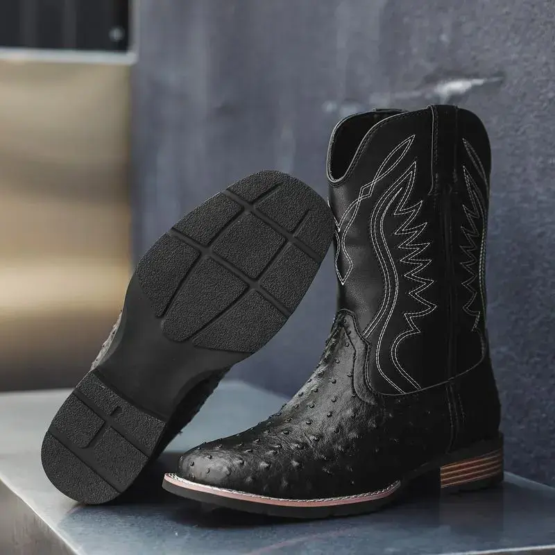 【PlusSize】Eleet Cowboy Boots for Men - Men's Western Boots With Embroidered, Slip Resistant Square Toe Chunky Heel Ankle Boots, Durable and Fashionable Retro Classic Short Botas Walking Shoes, Comfort Closed Footwear