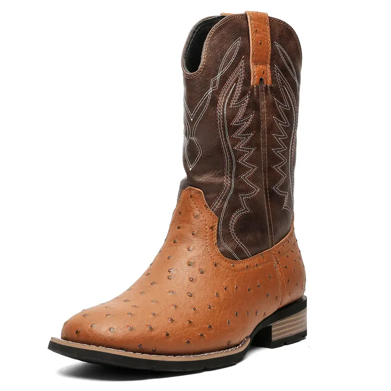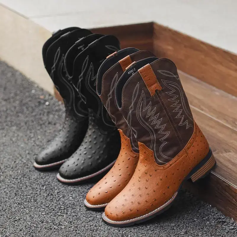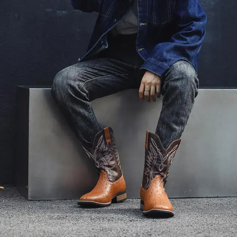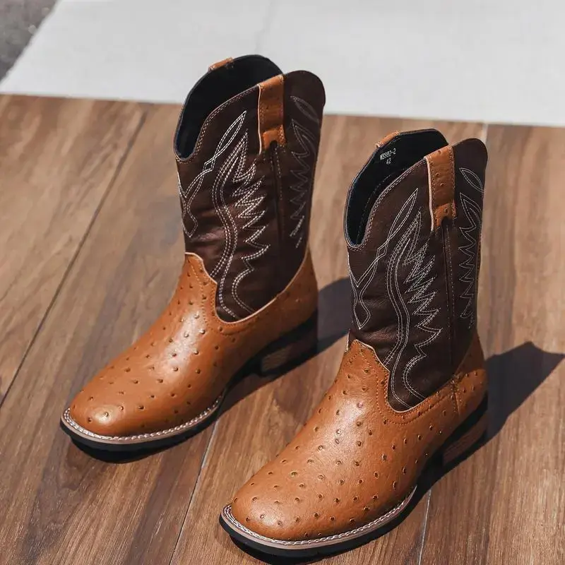 【7Colors】Eleet Cowboy Boots for Men -Square Toe Botas with Classic Embroidered, Slip Resistant Exotic Western Boots, Heel Ankle, Comfort Vintage, Fashion Closed Walking Shoes