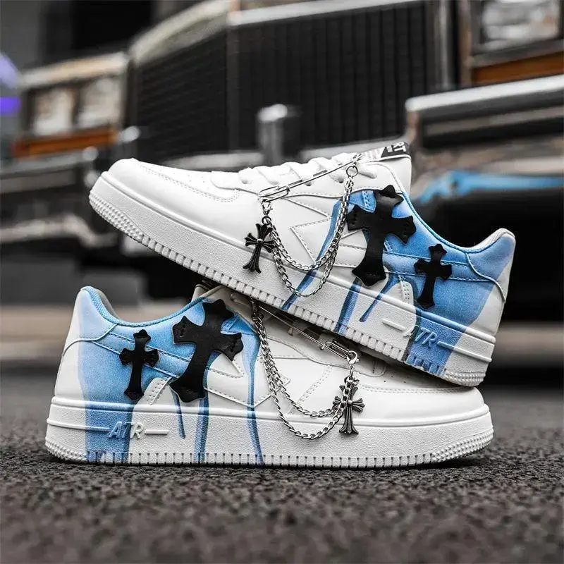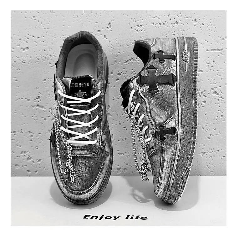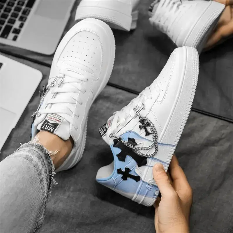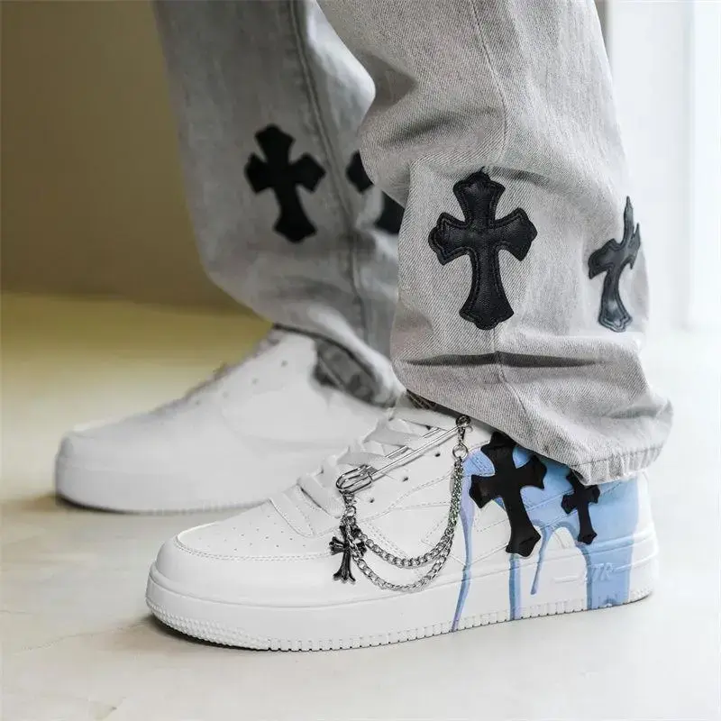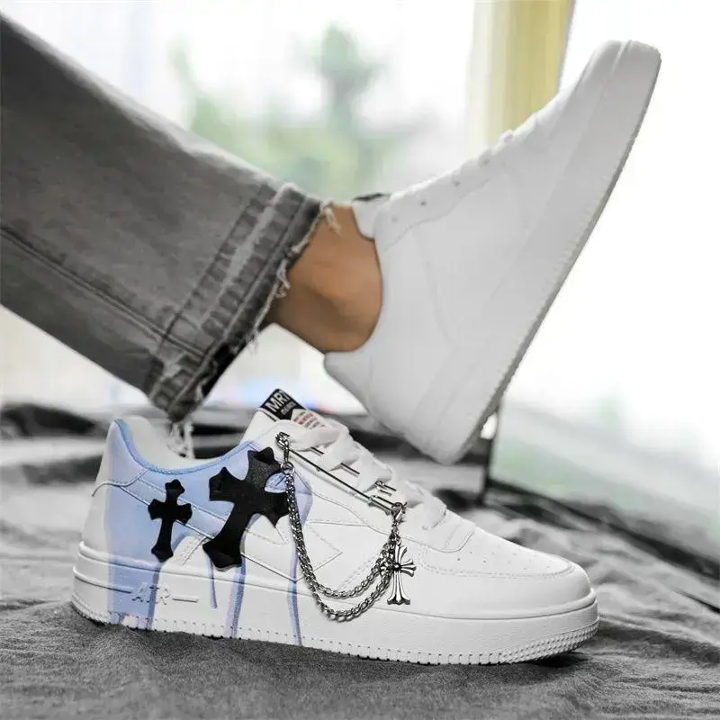 2025 Men's Autumn American Platform Sneakers Niche Chain Cross Graffiti Internet Hot Sports Casual Trainer Mrt-877-White Closed Boy Footwear Athletic Runner